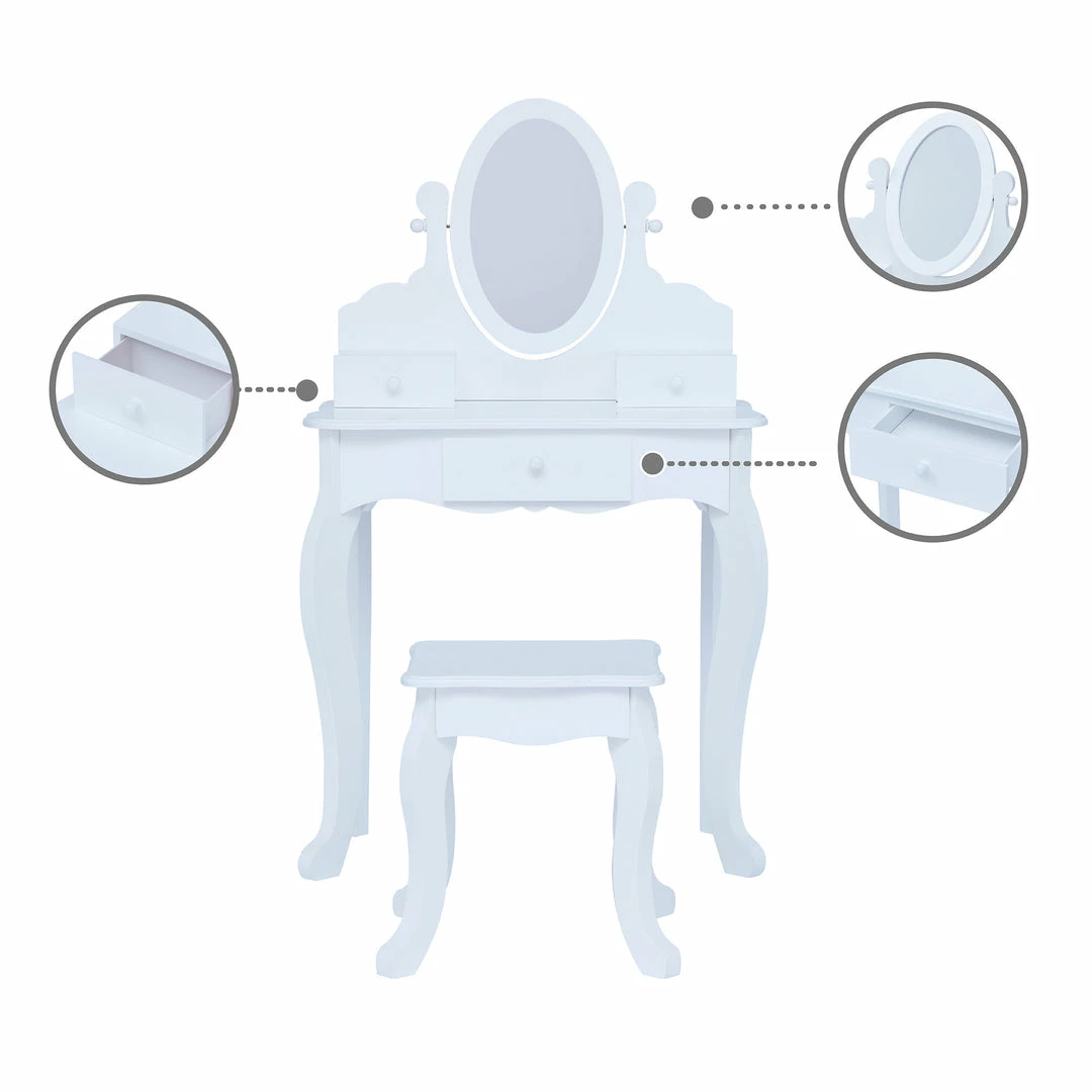 - KIDS VANITY TABLE: Features a scalloped design in a classic white finish for an elegant and functional addition to your child’s bedroom or play area