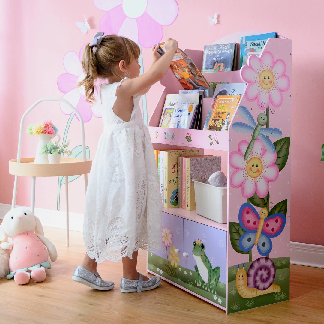 TeamsonUS Fantasy Fields Magic Garden Kids 3-Tier Wooden Bookshelf With Storage, Multicolor