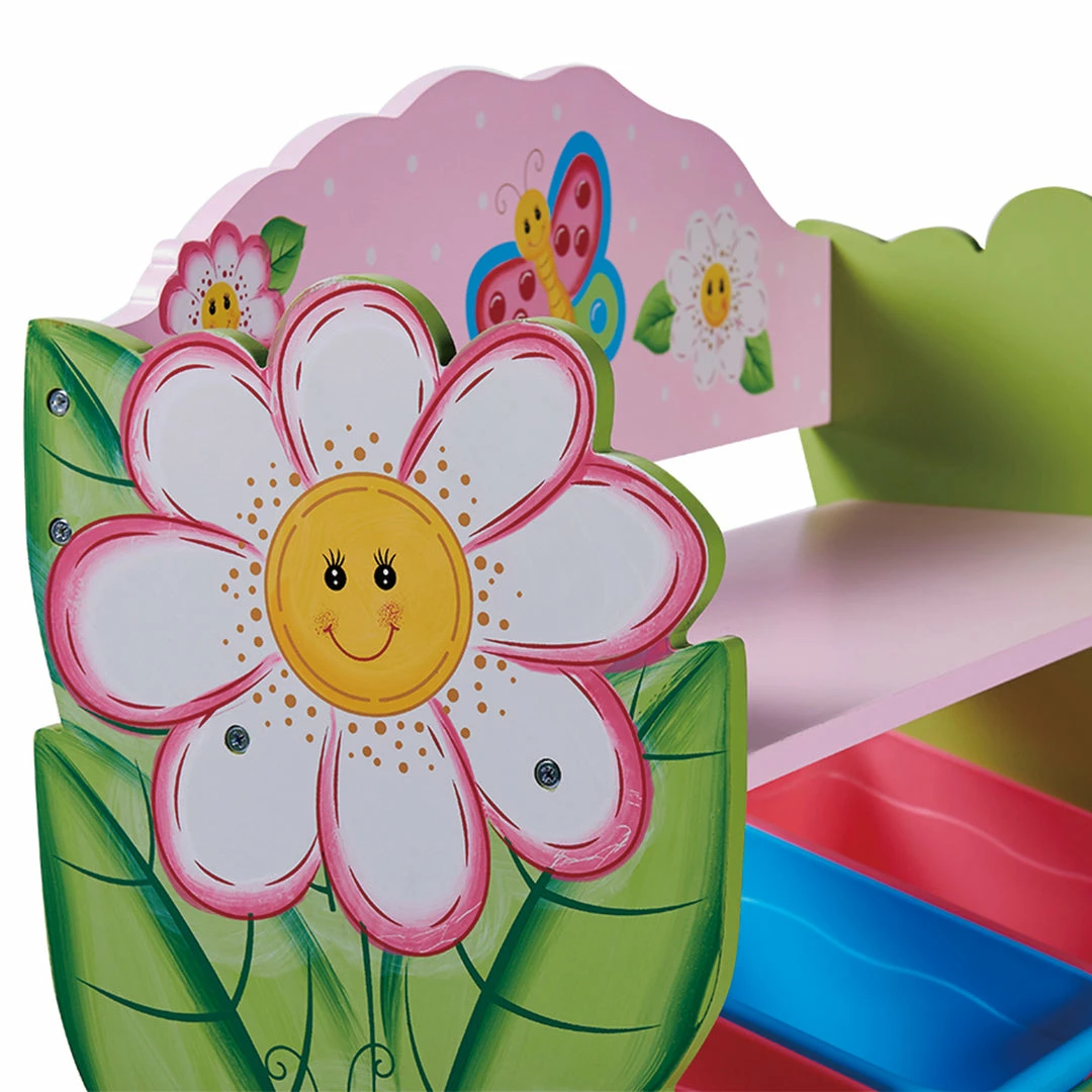 Fantasy Fields Magic Garden Kids Wooden Toy Organizer with Storage Bins, Pink/Green
