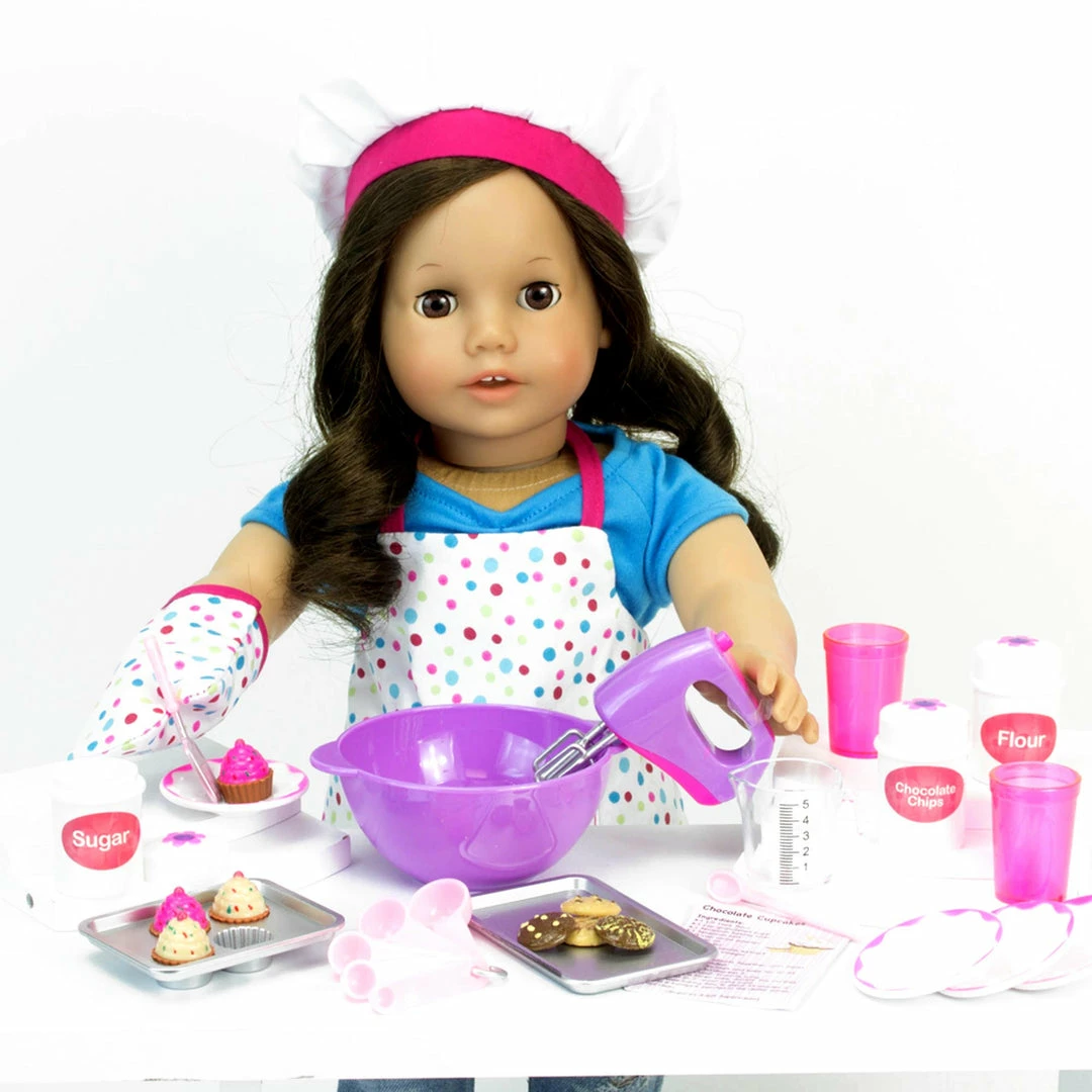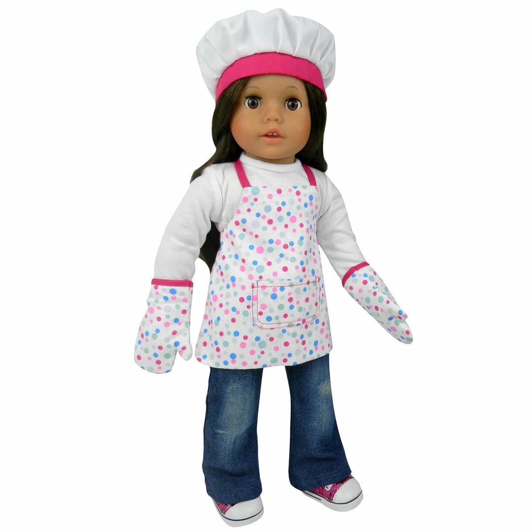 TeamsonUS Kids Sophia’s Baking Apron, White Hat And Oven Mitts Set For 18” Dolls, White