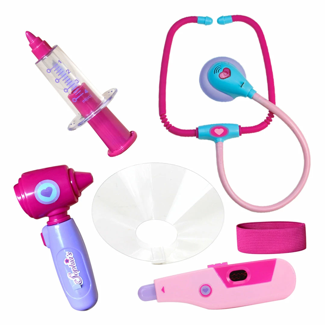 - LIGHTS & SOUND EFFECTS: The stethoscope features the sound of a “beating” heart and light, the otoscope shines a light, and the thermometer features sliding degrees that lights up for interactive play. Two AG10 1.5V batteries are contained within each battery powered tool.