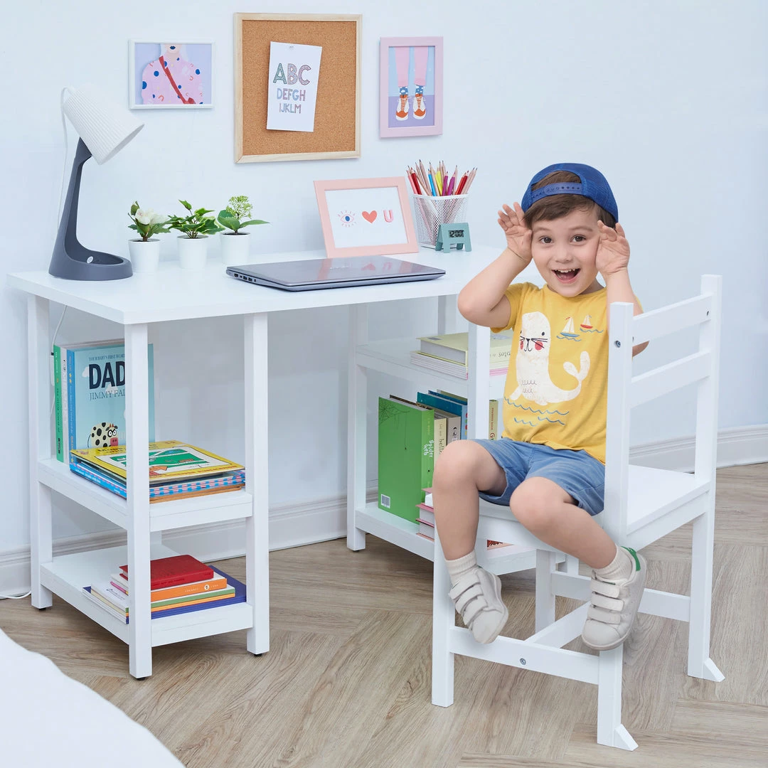 TeamsonUS New Fantasy Fields Wooden Play Desk With Shelves And Chair, White