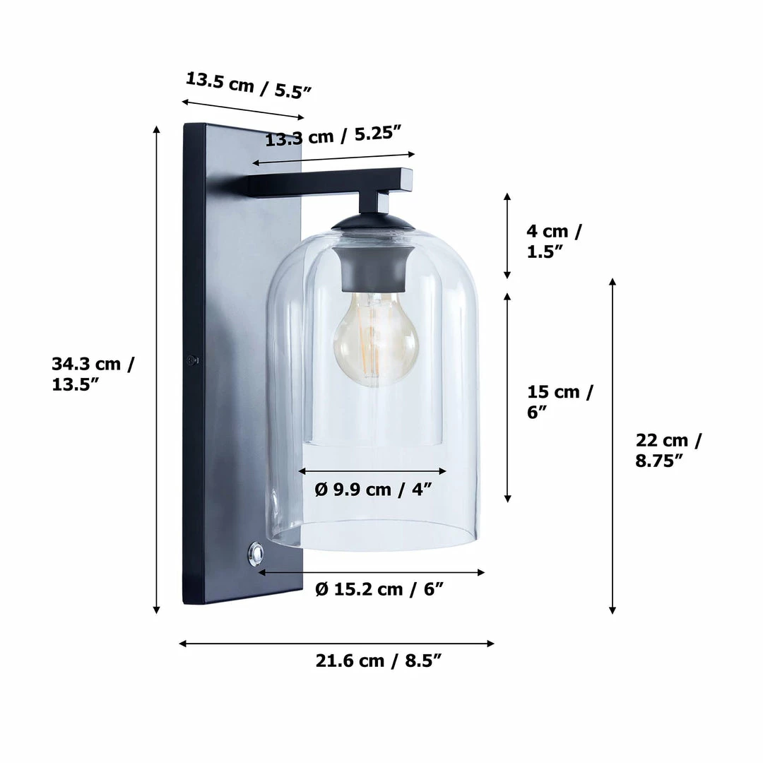 Add style and function to your home with this modern Teamson Home Wall Sconce with Glass Dome Shade. The matte black fixture offers an industrial style light for any room in the house. Hang the sconce in your doorway for a modern look, add it above your bedside table for ambient light, or display it in the bathroom for a sleek, updated style. The matte black armed sconce features a dimmer touch switch with three stages, making it perfect for any indoor space. The sconce is compatible with dimmable LED bulbs and E27 bulbs ranging between 25W to 7 W and is UL listing certified.
