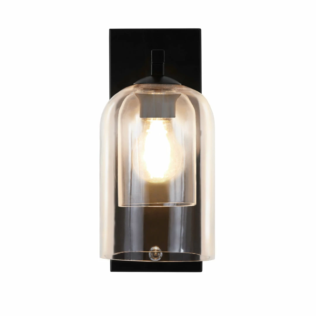 Teamson Home 1-Light Modern 13 1/2″ High Wall Sconce with Clear Double Glass Dome Shade, Matte Black