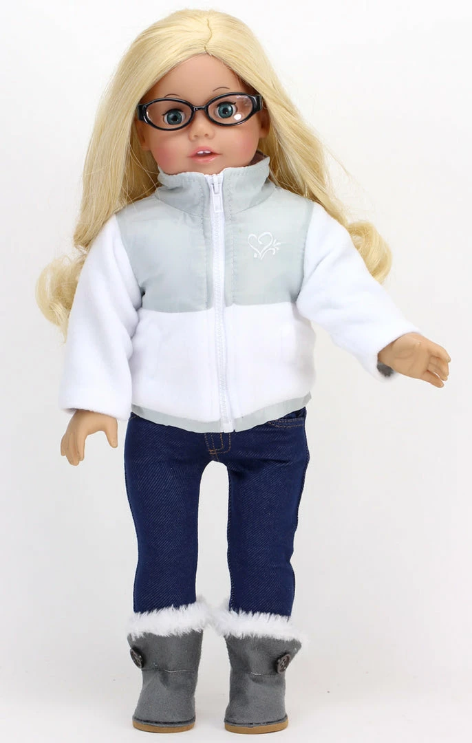Give your little one fun accessories to dress their doll up with the Sophia’s by Teamson Kids Gray Winter Button Boots with fur. The boots are easy for children to put on and take off their favorite dolls for hours of endless fun. With their white fur lining and trim, the trendy gray suede style boots feature a gray side button with soft tan soles to encourage your little one to use their imagination while playing. Plus, the boots allow your little one to accessorize their doll to look just like themselves. Made for 18″ dolls, the shoes are compatible with Sophia’s dolls, American Girl dolls, My Life As dolls, Our Generation dolls, and more! Dolls not included.