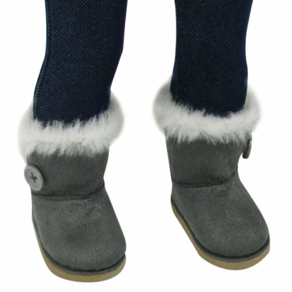 - FUN PRETEND PLAY: With their white fur lining and trim, the gray suede style boots feature a gray side button with soft tan soles to encourage your little one to use their imagination while playing