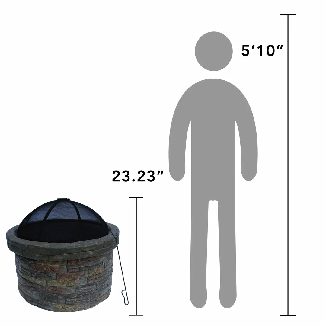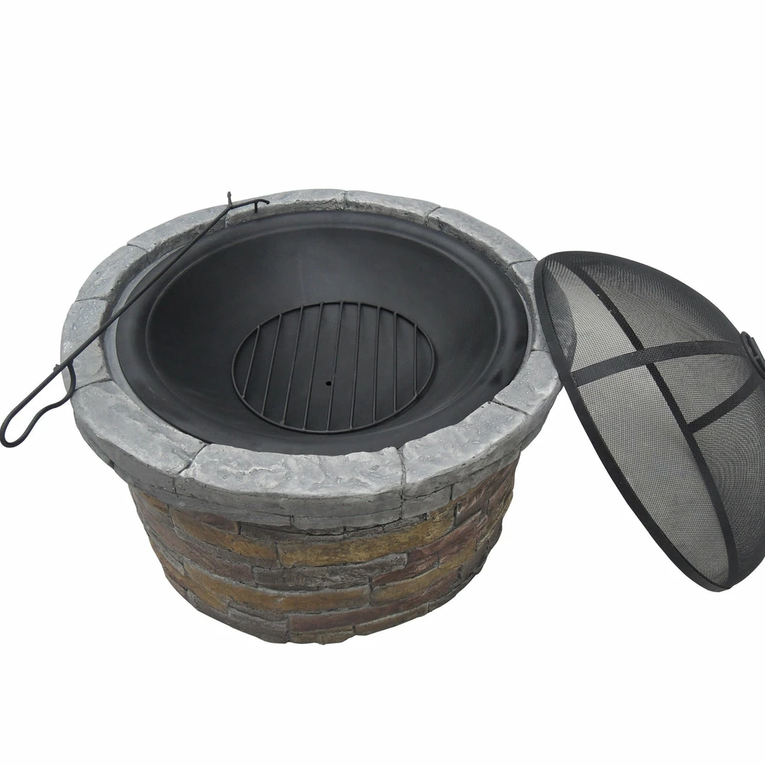 TeamsonUS Teamson Home 27″ Outdoor Round Stone Wood Burning Fire Pit With Steel Base, Natural Stone