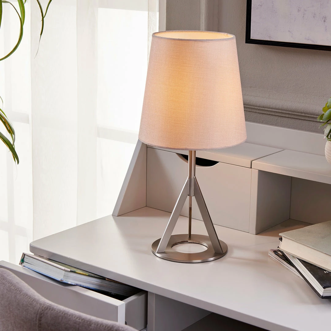 TeamsonUS Teamson Home Aria 15″ Modern Table Lamp With Round Shade, Brass/Khaki