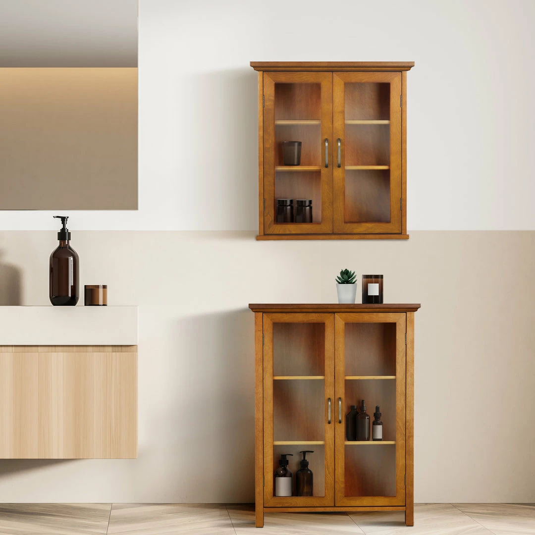 Teamson Home Avery Wooden 2 Door Wall Cabinet with Storage, Oiled Oak