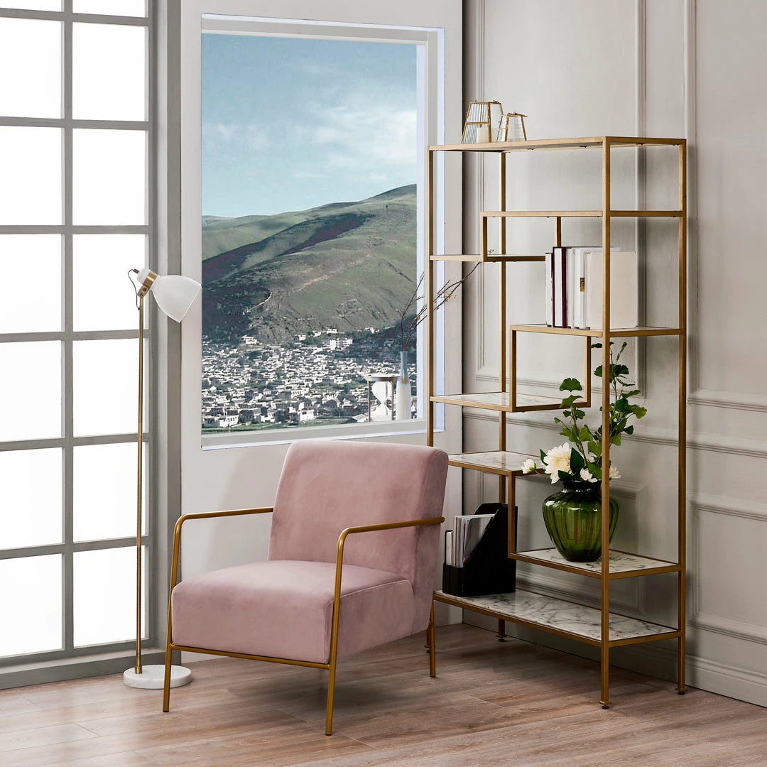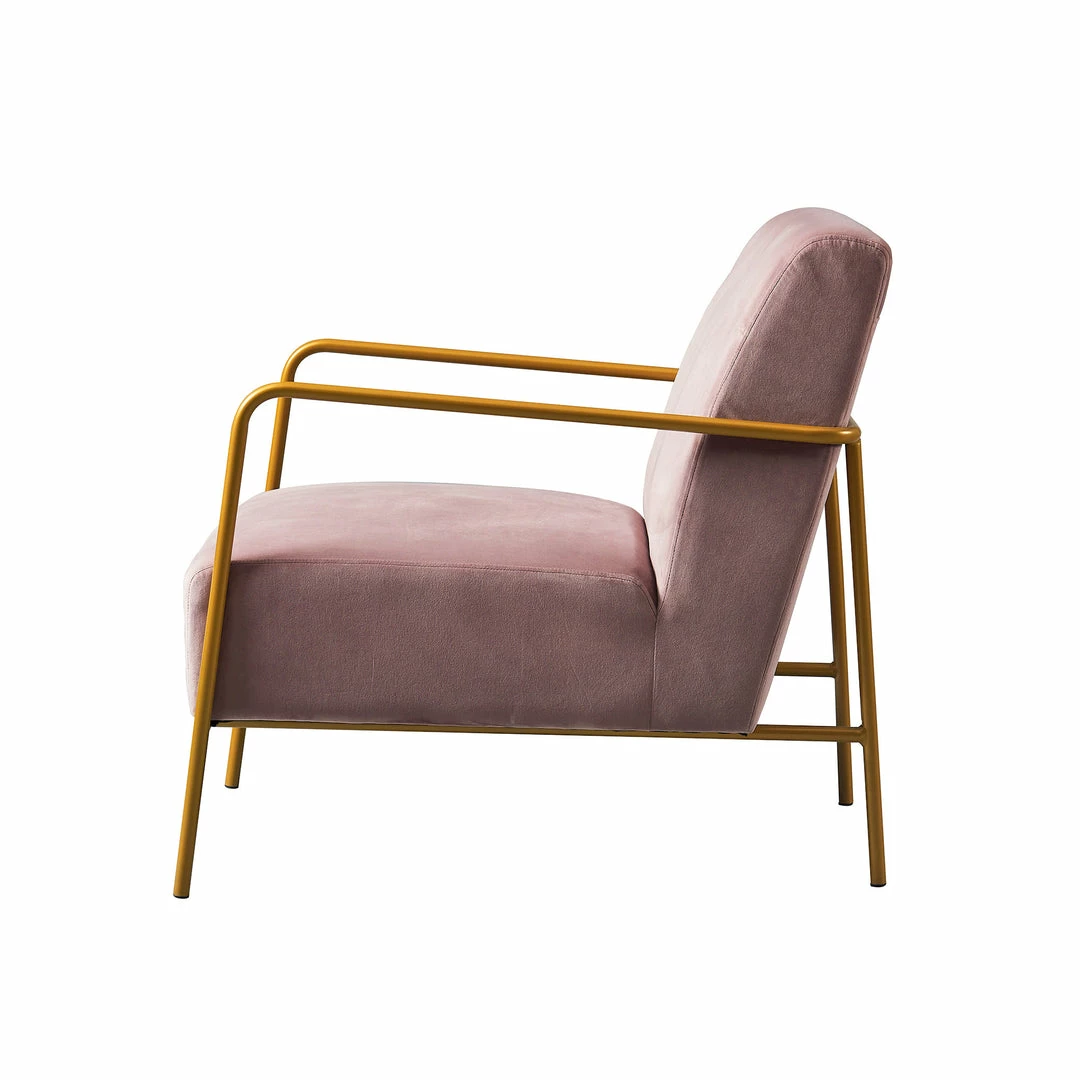 - STYLISH ARMCHAIR: Features neutral mauve fabric with gold-finished metal legs for a beautiful and comfortable addition to any space