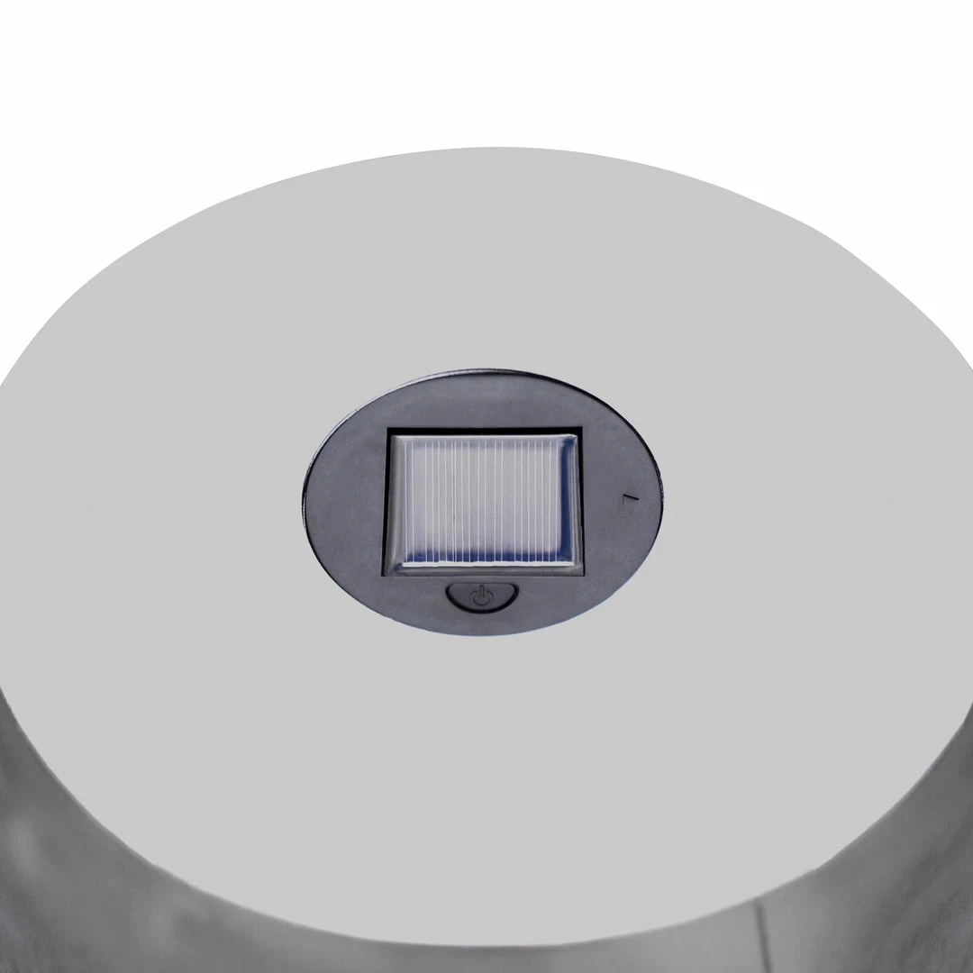 - INCLUDED: One round silver iron table stand with a built-in solar powered light.