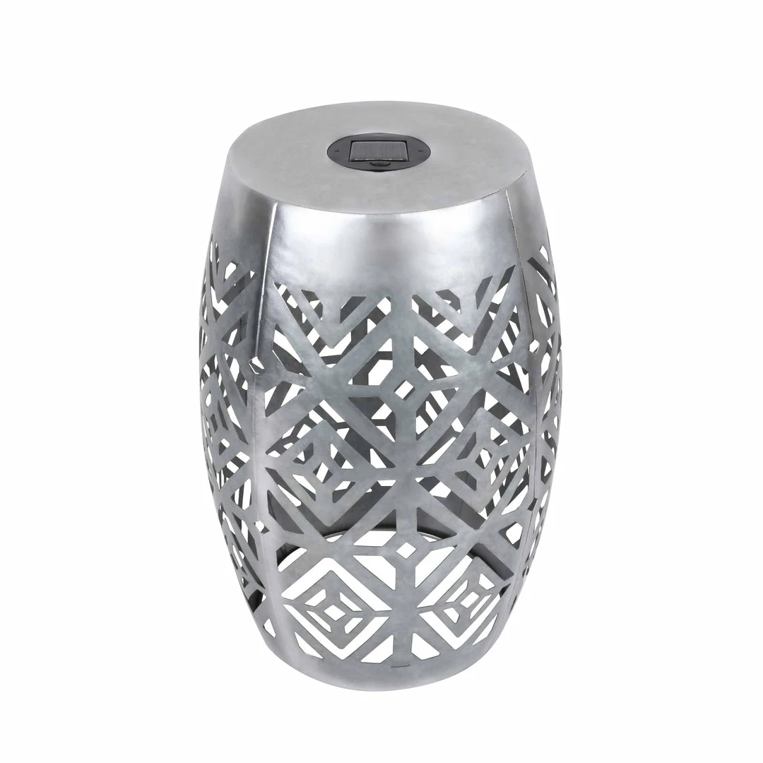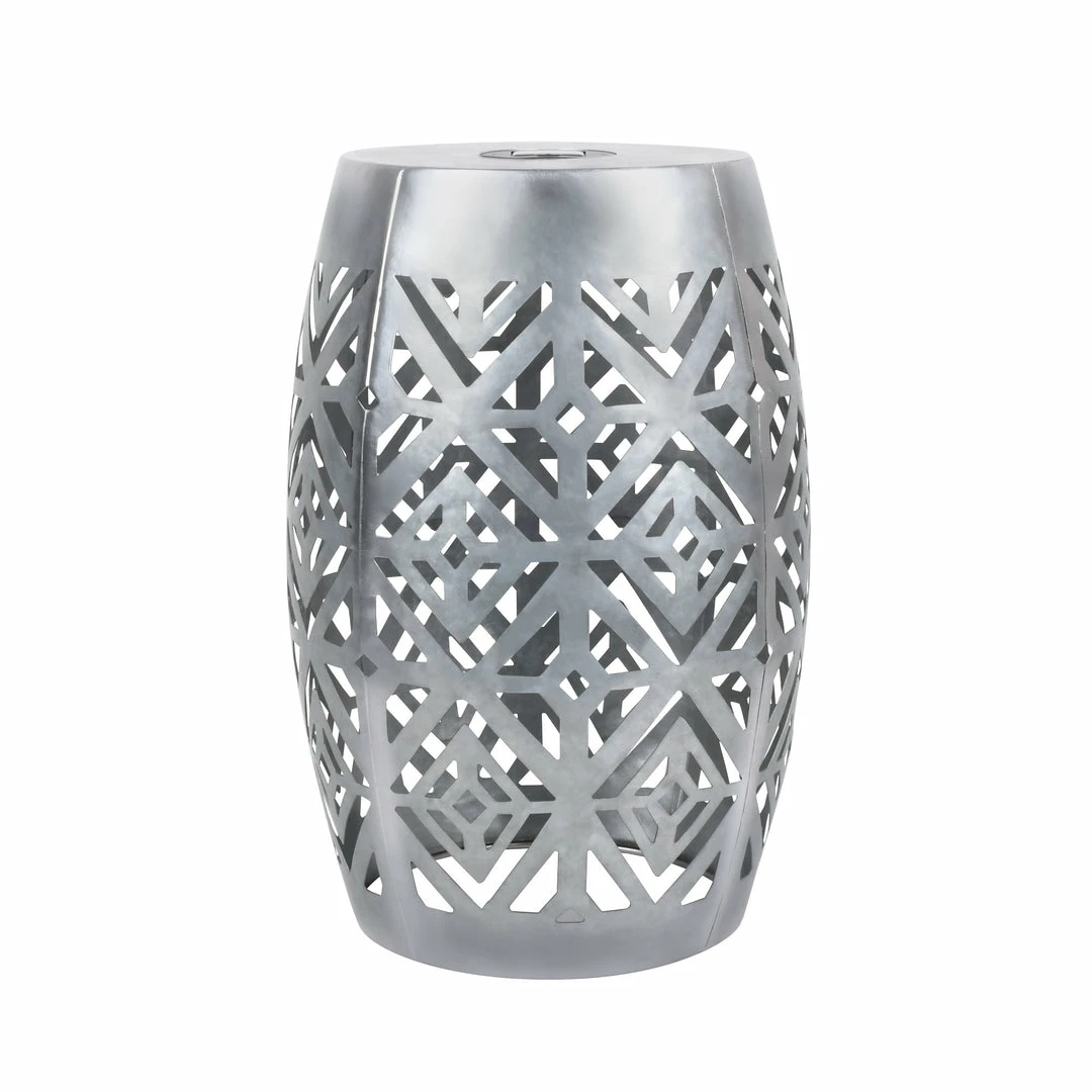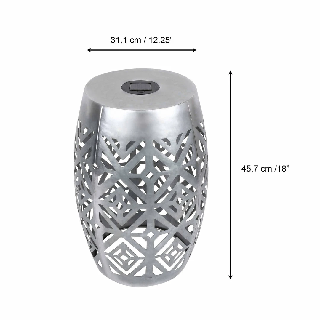 The Teamson Home Patio Side Table features carefully crafted diamond cut outs and a built in solar powered light which creates a decorative floral shadow in the dark. The silver side table is made with sturdy iron and thus can be used as a patio table or planter stand inside or outside the home. This iron stool measures 12.25″ in diameter and 18″ tall.