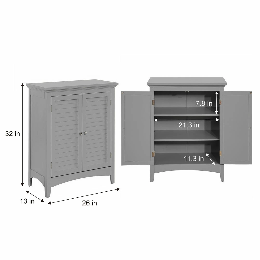 Teamson Home Glancy Wooden Floor Cabinet with Shutter Doors and Adjustable Shelves, Gray
