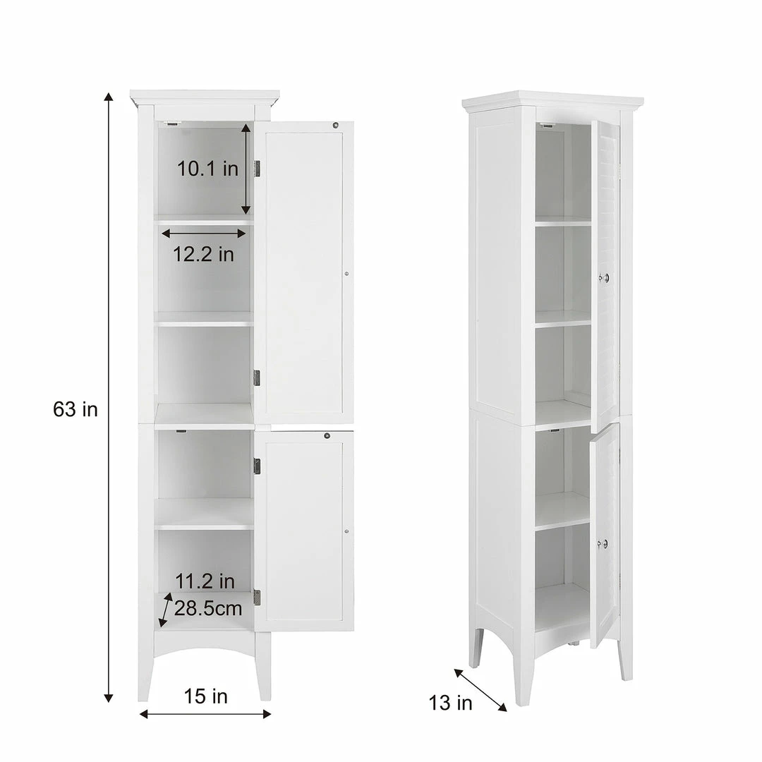 - FUNCTIONAL: This tall linen cabinet has double-tier louvered doors with four interior shelves, with three tiers in the top and two in the bottom section. Allowing a lot of extra storage room for soaps, shampoos, towels, toiletries, and more but taking up little to no bathroom space.