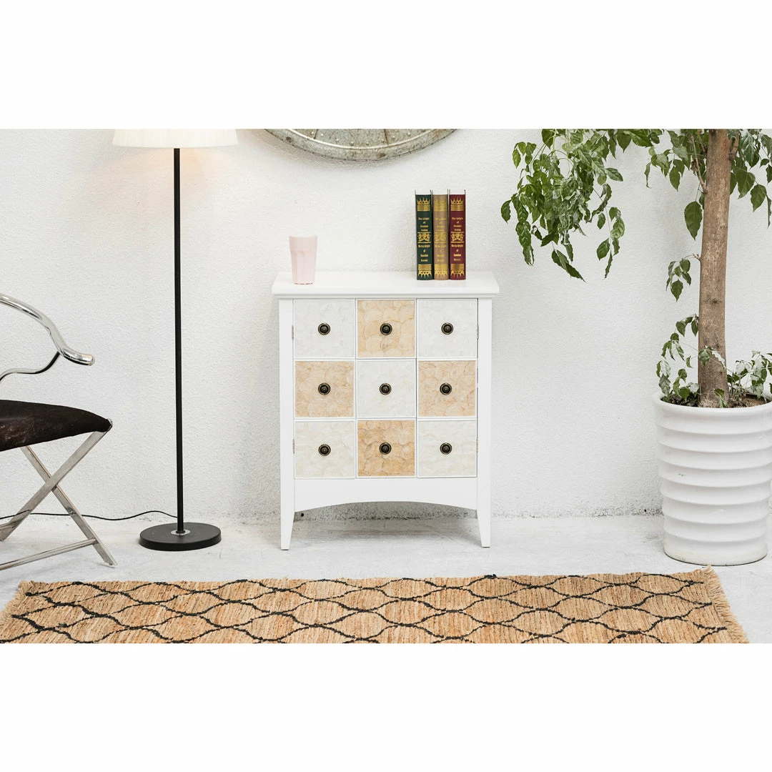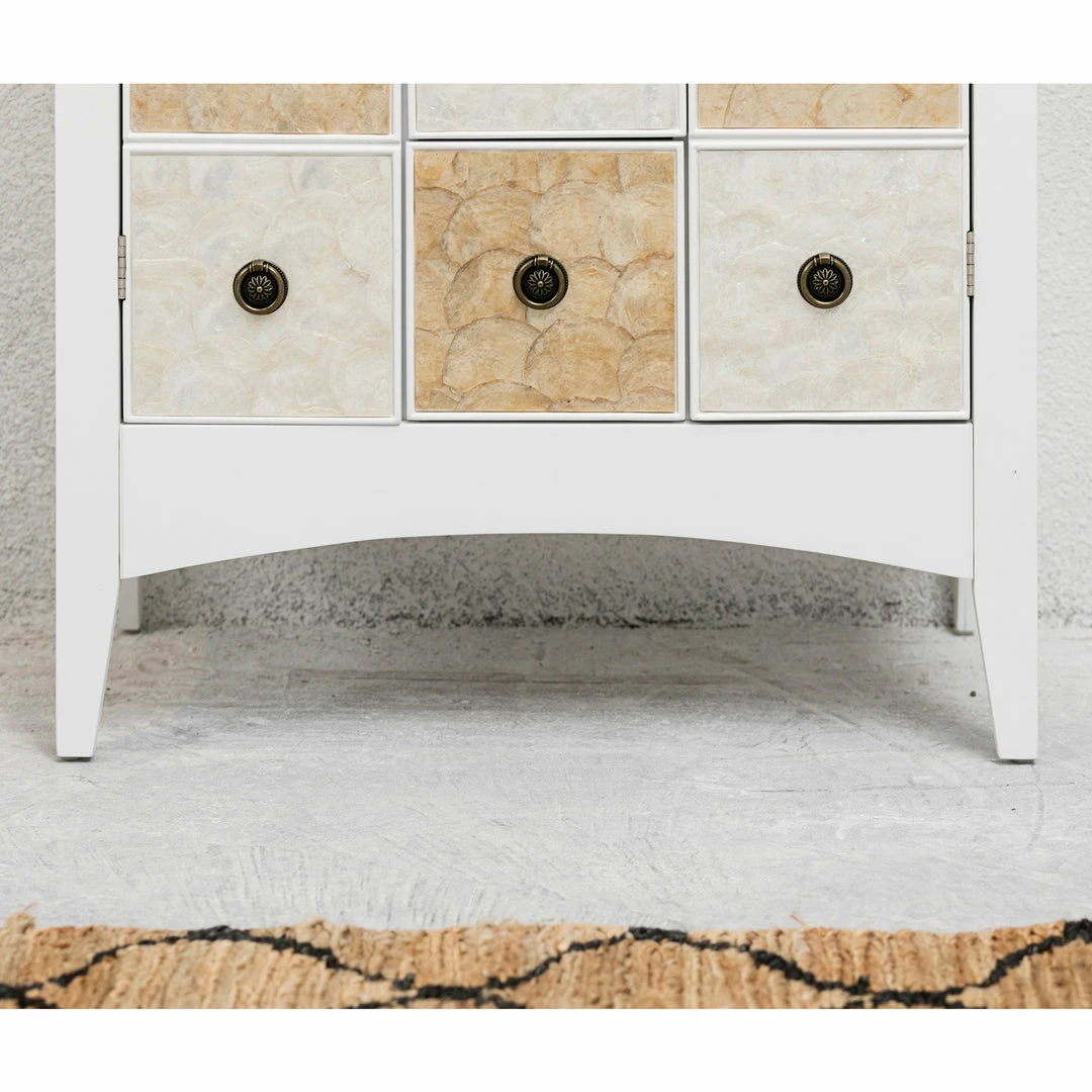 - Has the look and feel of abalone shells on the door fronts and drawer fronts.