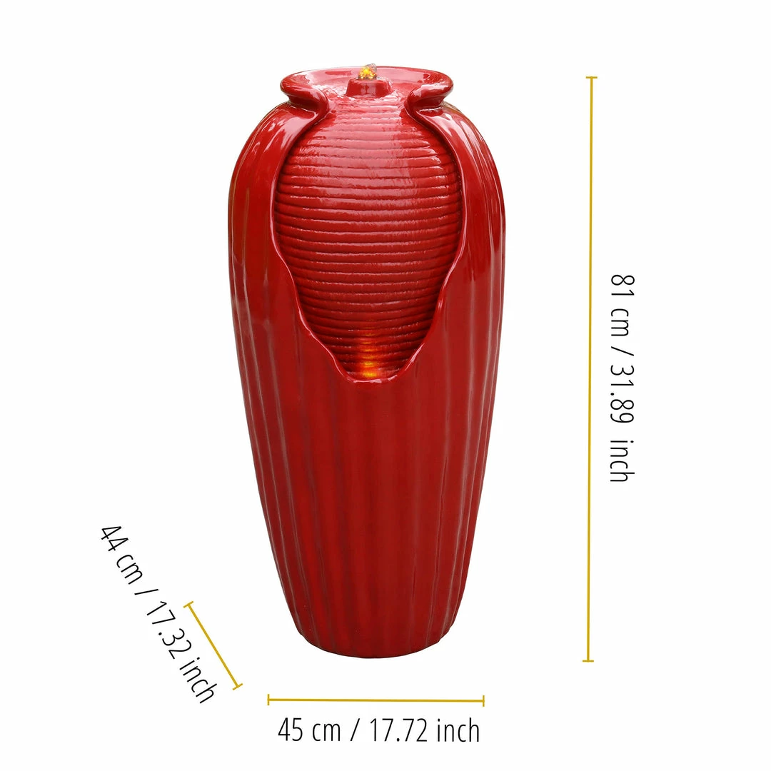 TeamsonUS Teamson Home Indoor/Outdoor Contemporary Glazed Contoured Vase Water Fountain With LED Lights, Red