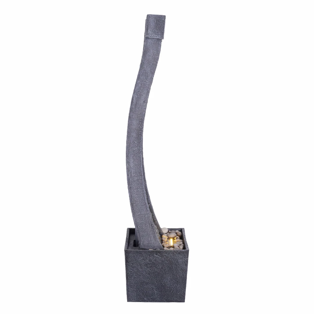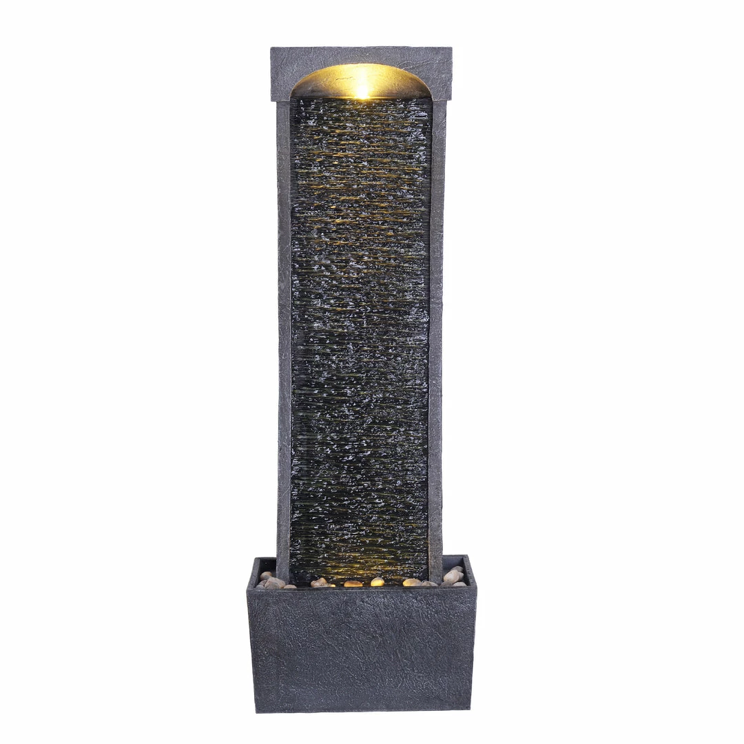 TeamsonUS Teamson Home Indoor/Outdoor Modern Curved Slate Stone-Look Tall Waterfall Fountain With LED Lights