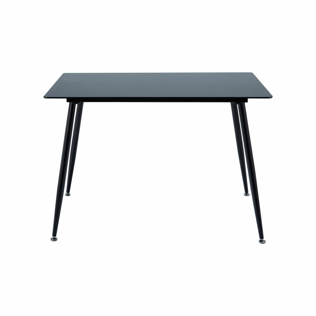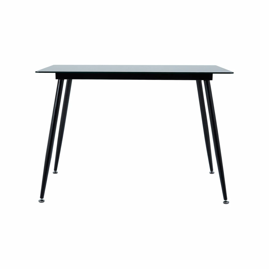 - INCLUDED: One tempered glass table with a metal frame and tapered legs.