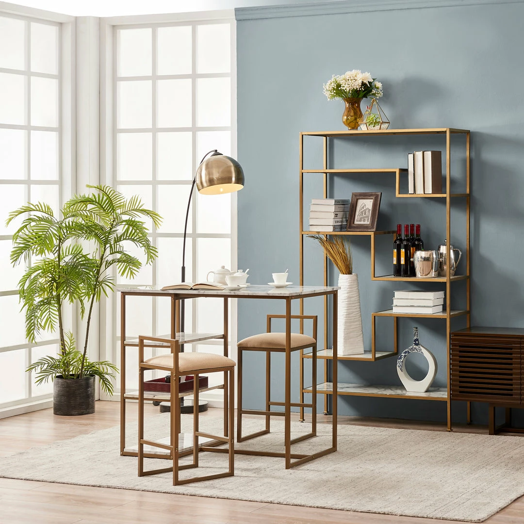 TeamsonUS Teamson Home Marmo Modern Marble-Look Breakfast Table Set With 2 Stools And Storage, Marble/Brass