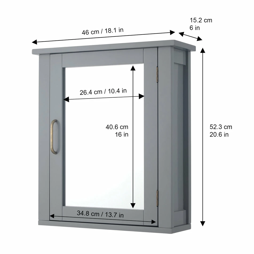 TeamsonUS Teamson Home Mercer Mid Century Modern Wooden Removable Medicine Cabinet, Gray