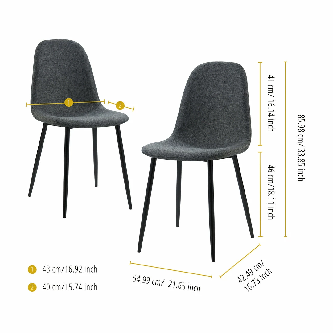 - STYLISH DINING CHAIRS: Feature a mid-century design with a gray fabric seat and black metal legs for a sleek and functional addition to any living or dining space