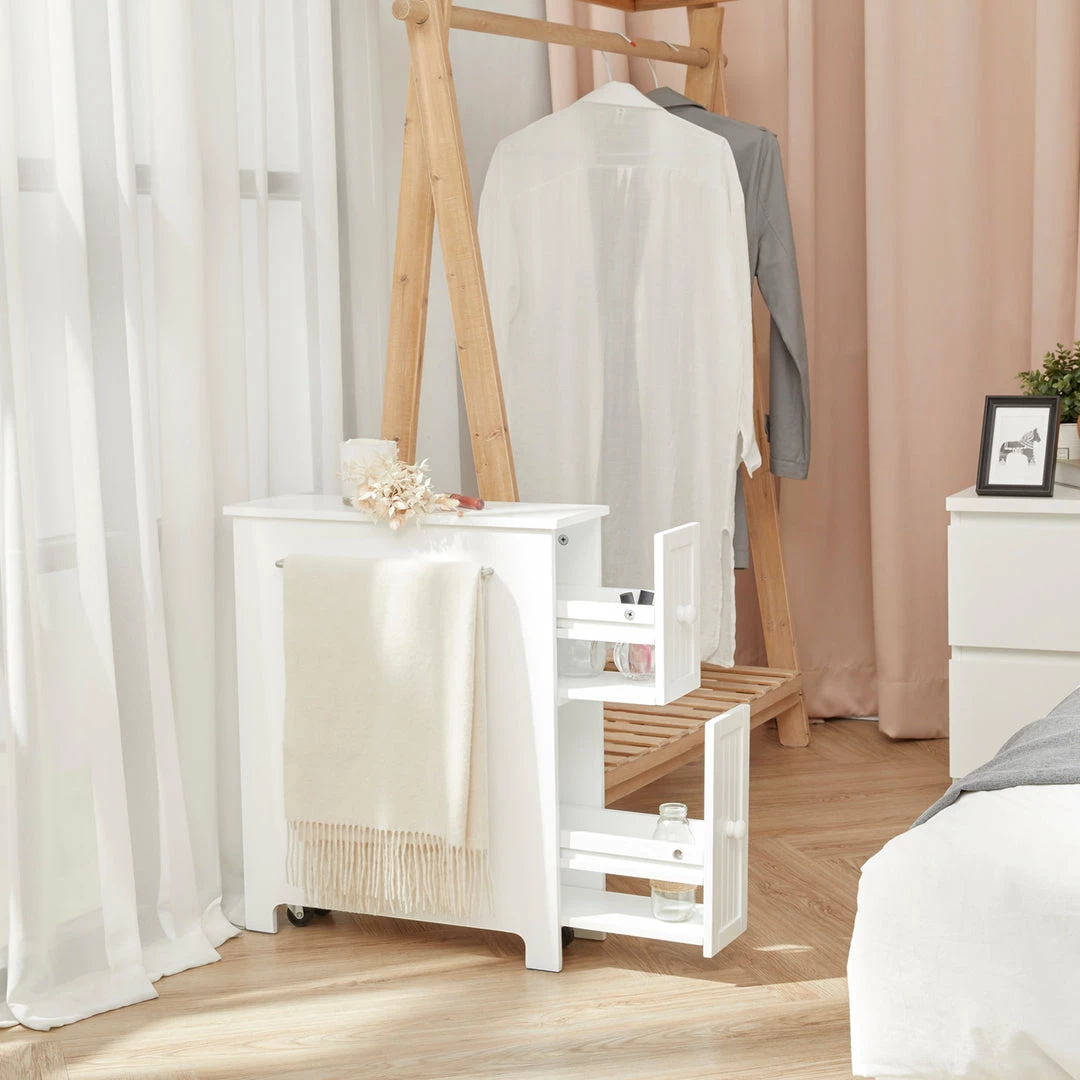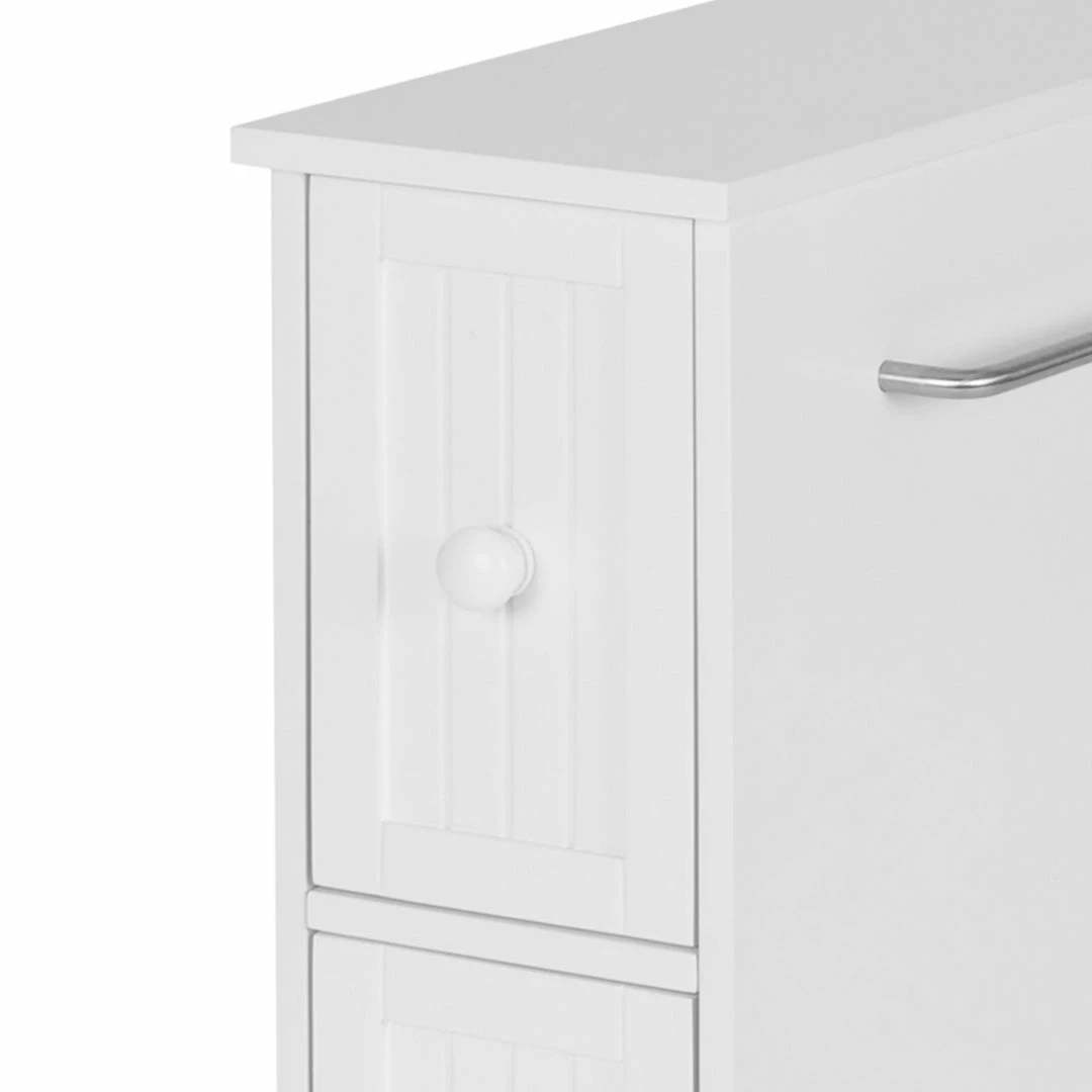 Teamson Home Narrow Cabinet with Storage Drawers and Towel Bar 6.5″ L x 25″ H, White