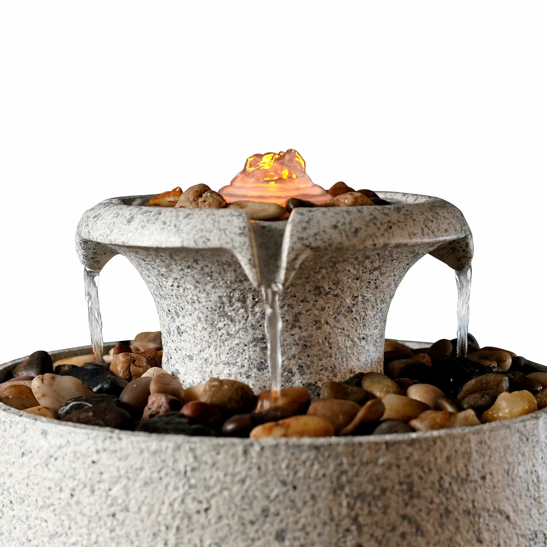 Teamson Home Natural Tabletop Tiered Fountain with LED Light, Stone