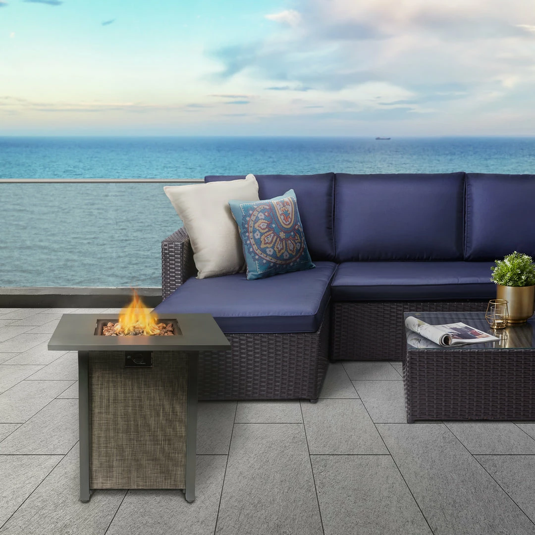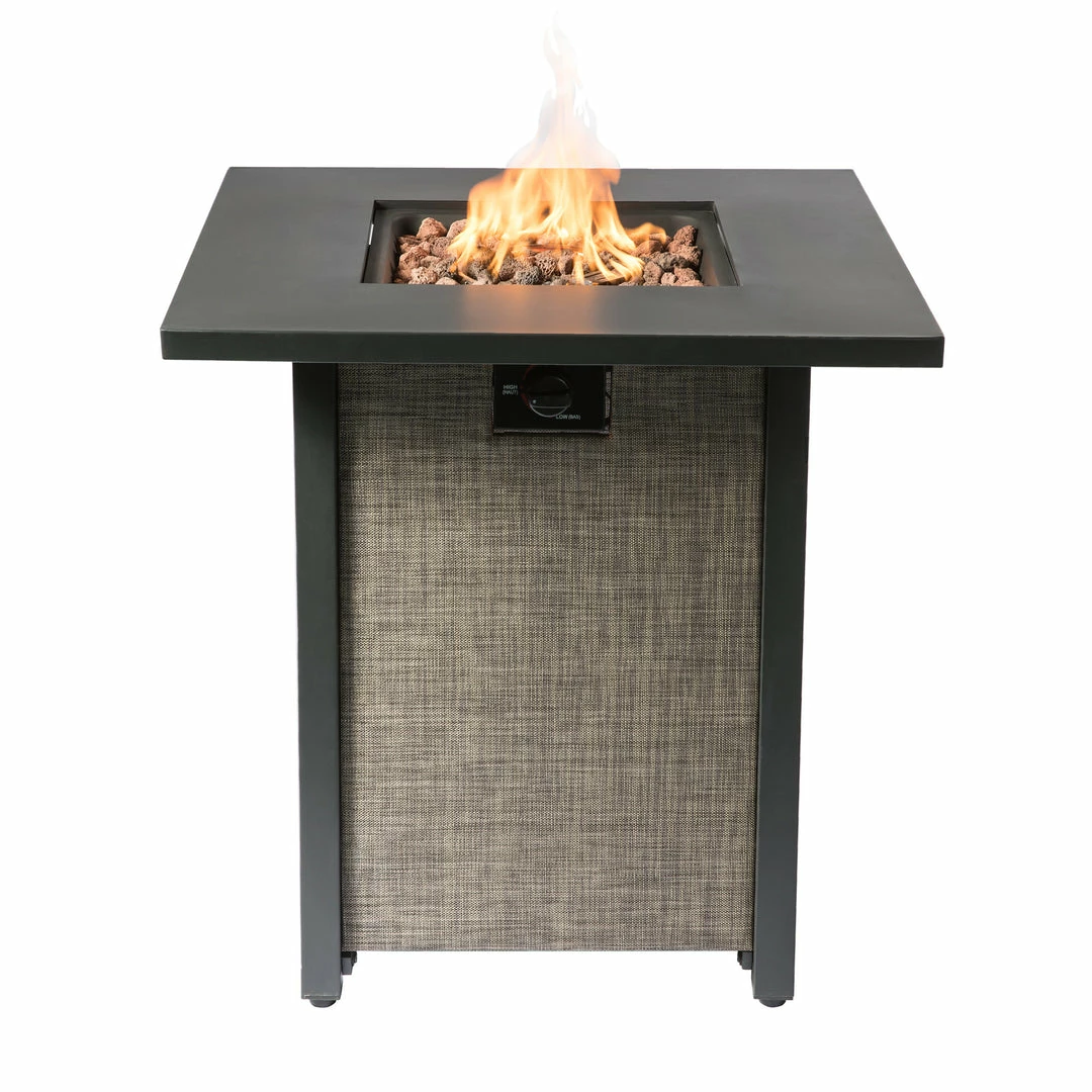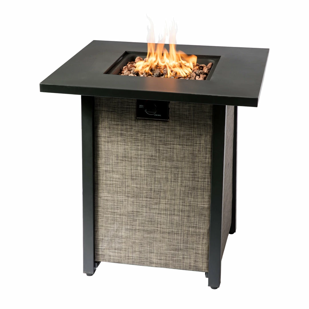 TeamsonUS Teamson Home Outdoor 28″ Propane Gas Fire Pit Table With Lid And Texteline Base, Beige