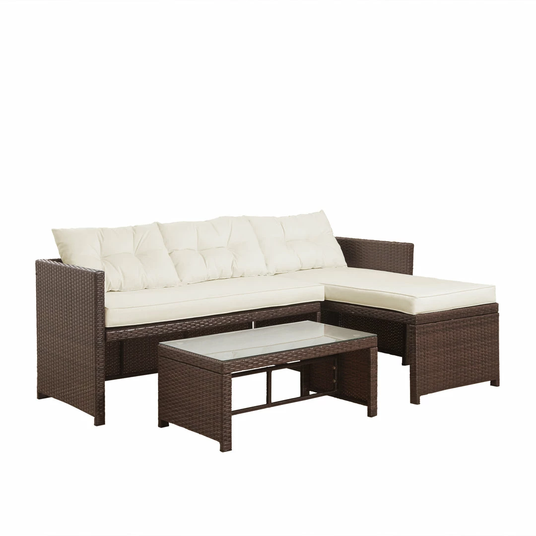 - RATTAN PATIO SECTIONAL SET: Includes a two-person loveseat, chaise lounge, and coffee table to add comfortable seating to your backyard, patio, deck, front porch, balcony, or any outdoor space
