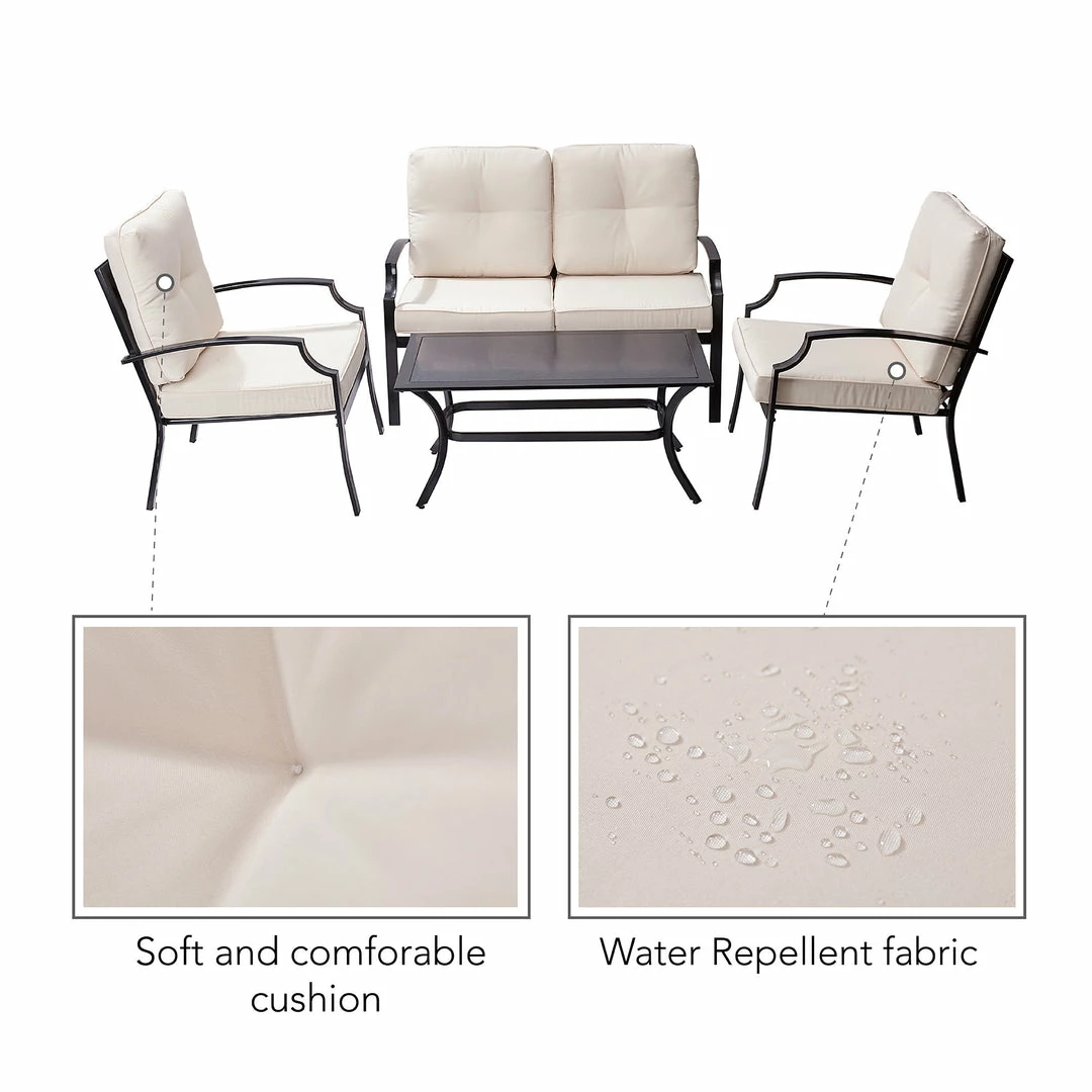 Teamson Home Outdoor 4-Piece Metal Patio Set with Loveseat, Two Chairs & Table, Black/Beige