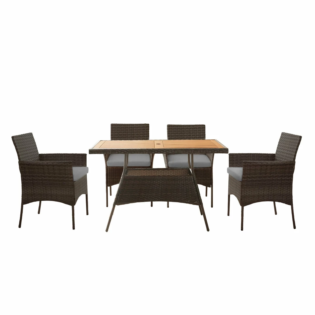 Teamson Home Outdoor 5 Piece Rattan and Acacia Wood Patio Dining Set with Four Chairs and Table, Brown