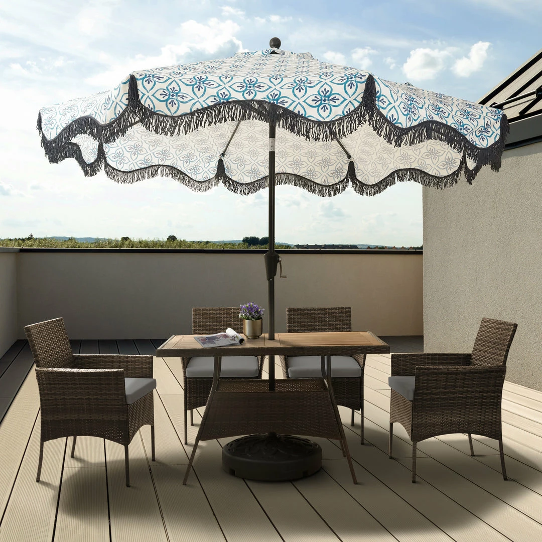 - RATTAN PATIO BISTRO SET: Includes four chairs and a table to add comfortable seating and dining options to your backyard, patio, deck, front porch, balcony, or any outdoor space