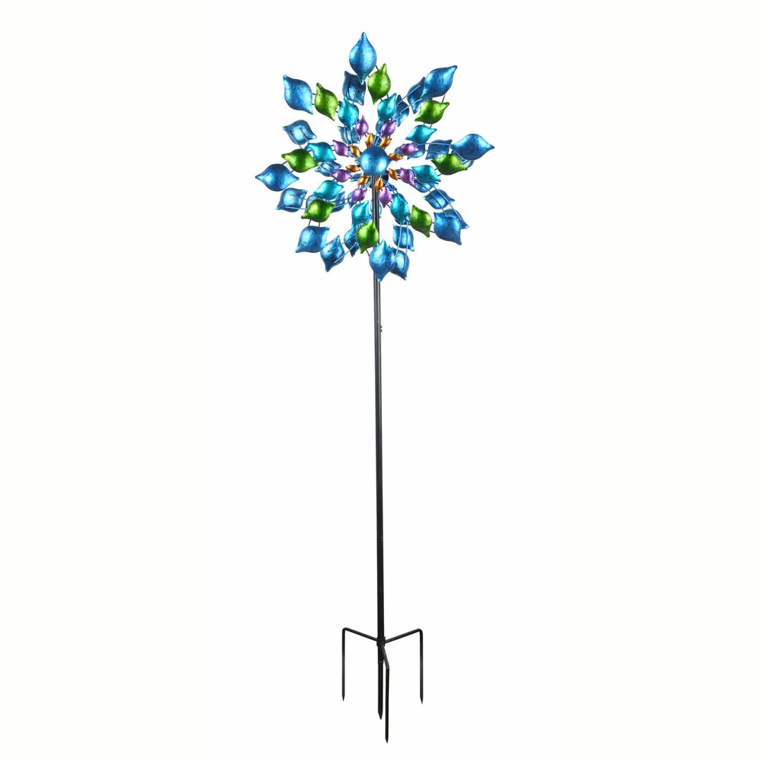 Teamson Home – Outdoor Blue Floral Kinetic Dual Spinner Windmill