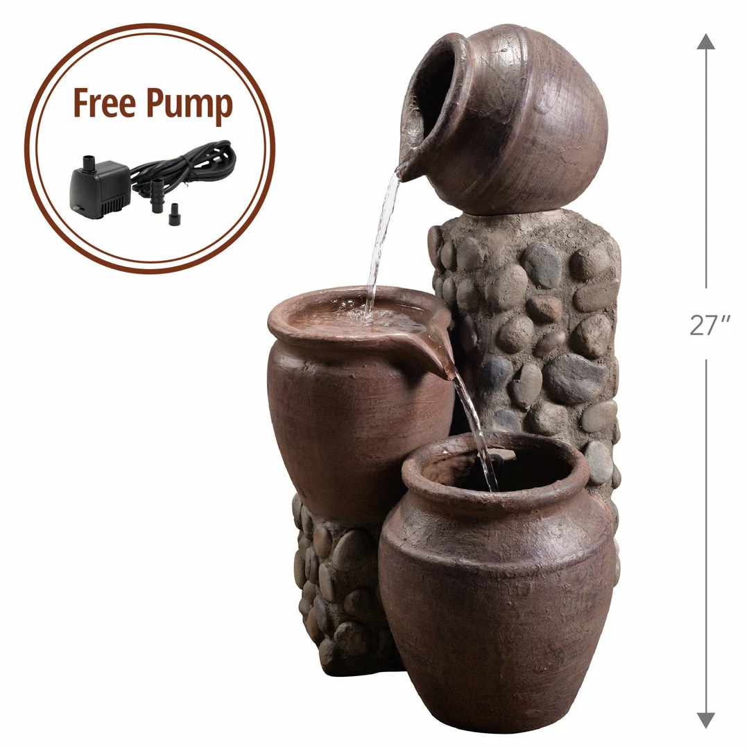 TeamsonUS Teamson Home Outdoor Cascading Stacked Pot Waterfall Fountain, Gray