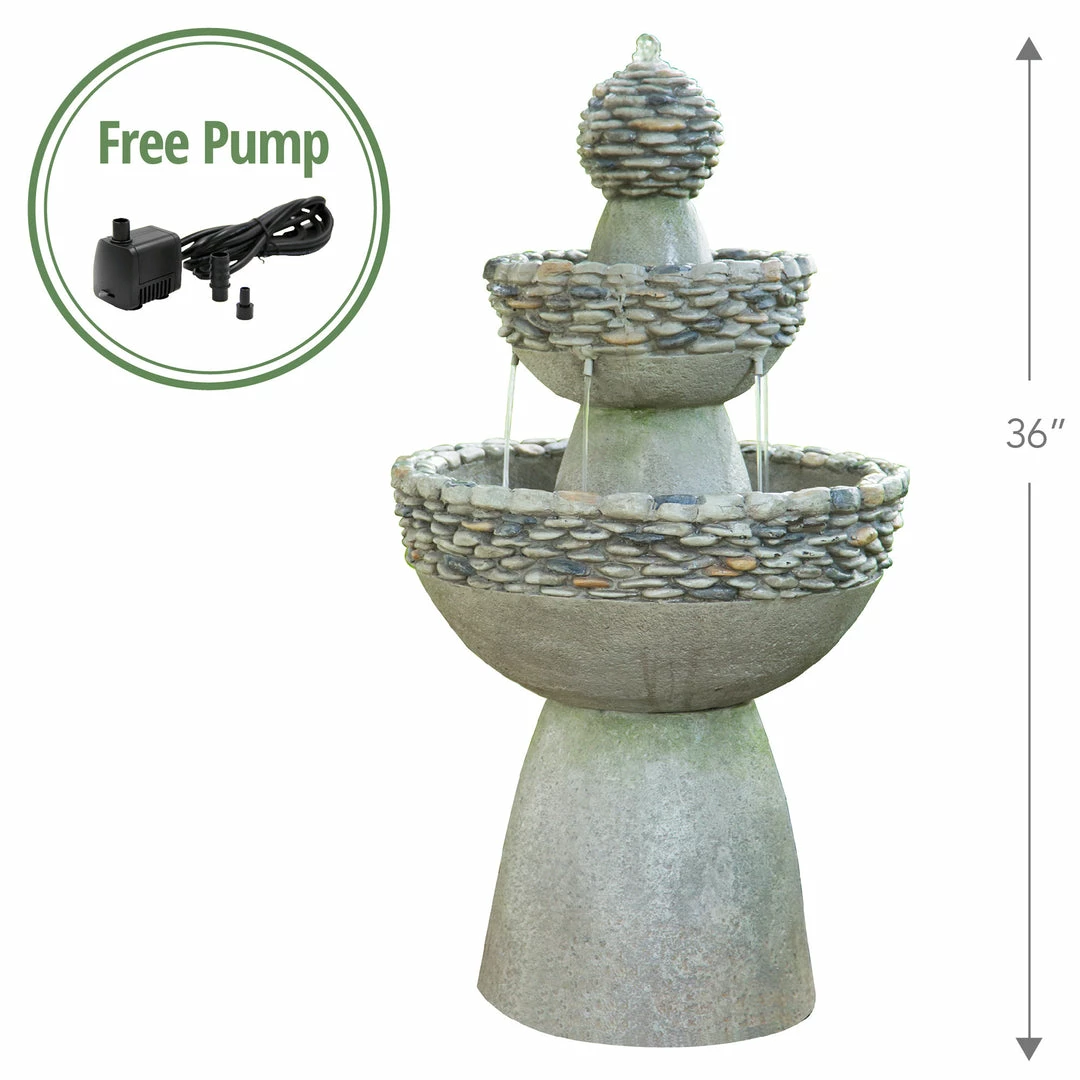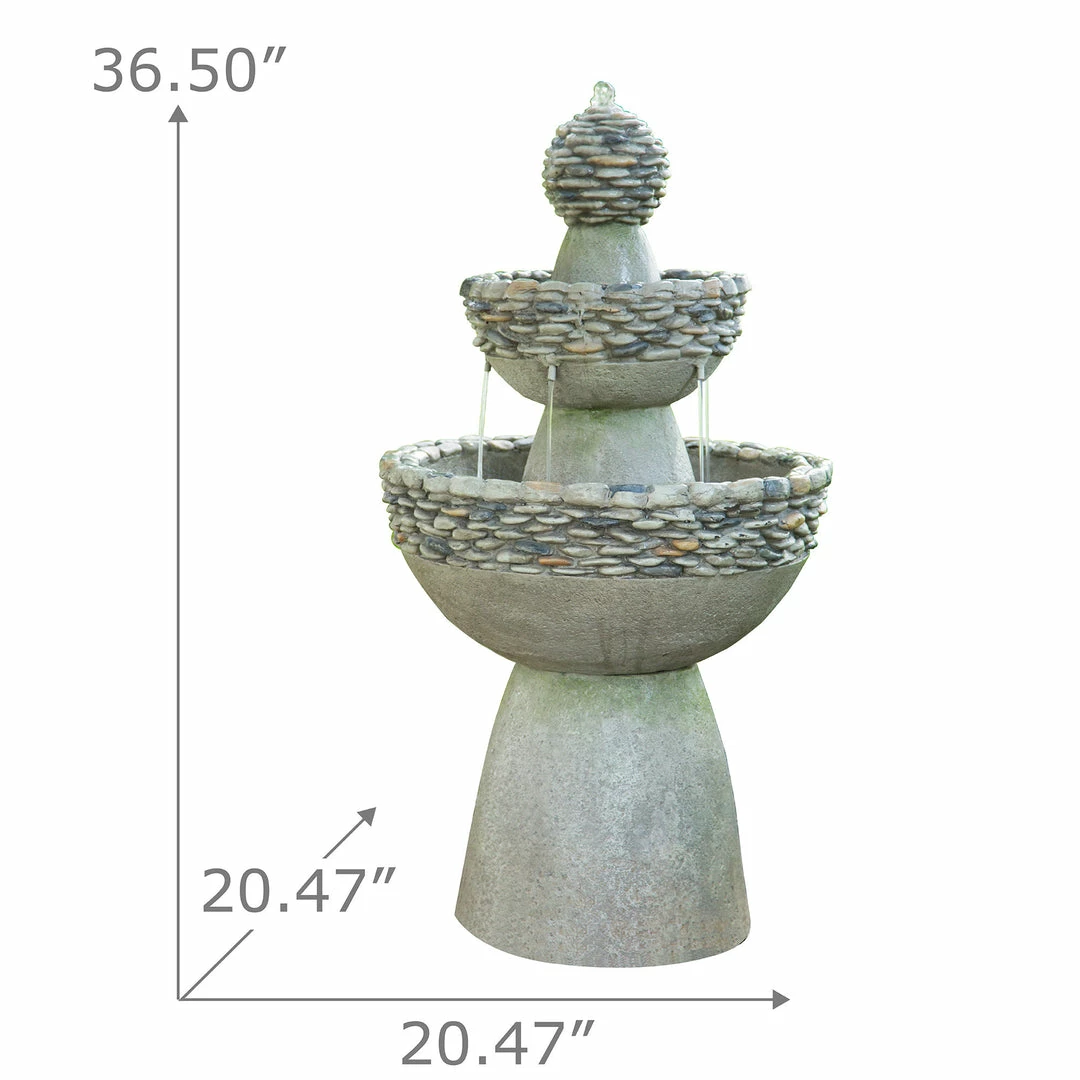 Experience spa-like tranquility right in your back yard with the Teamson Home Outdoor Zen 3-Tiered Fountain with river stone accents. Embrace the soothing ambiance of cascading water that sets the tone for a nice relaxing evening. This 3-tiered faux stone garden fountain is made from durable weather, and rust-resistant polyresin and fiberglass and is the perfect addition to any outdoor space.