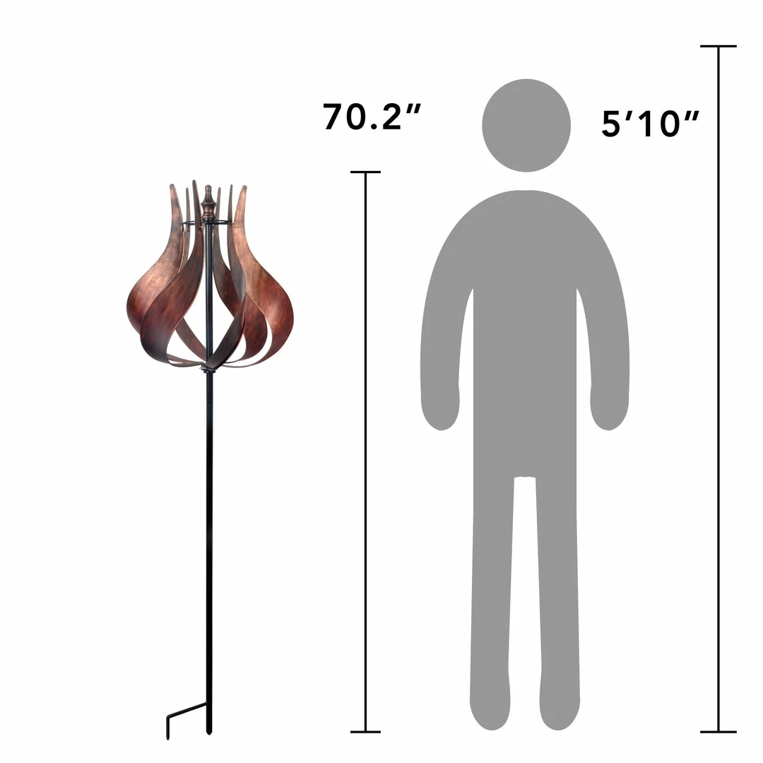 Teamson Home Outdoor Tulip Kinetic Windmill Sculpture, Tangerine