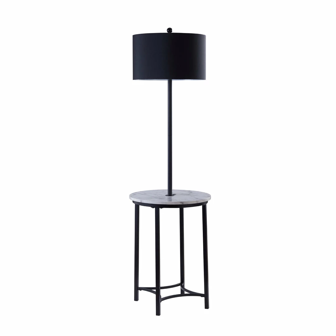 TeamsonUS Teamson Home Shenna Floor Lamp With Faux Marble Tray Table And Built-In USB Port, Black