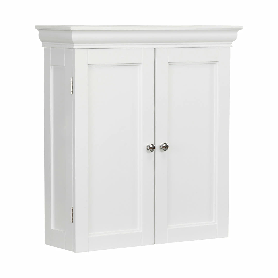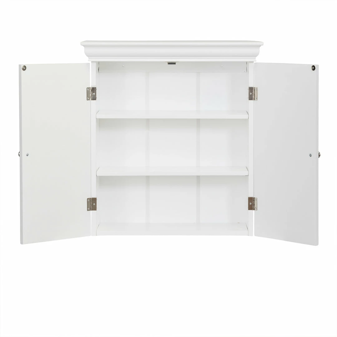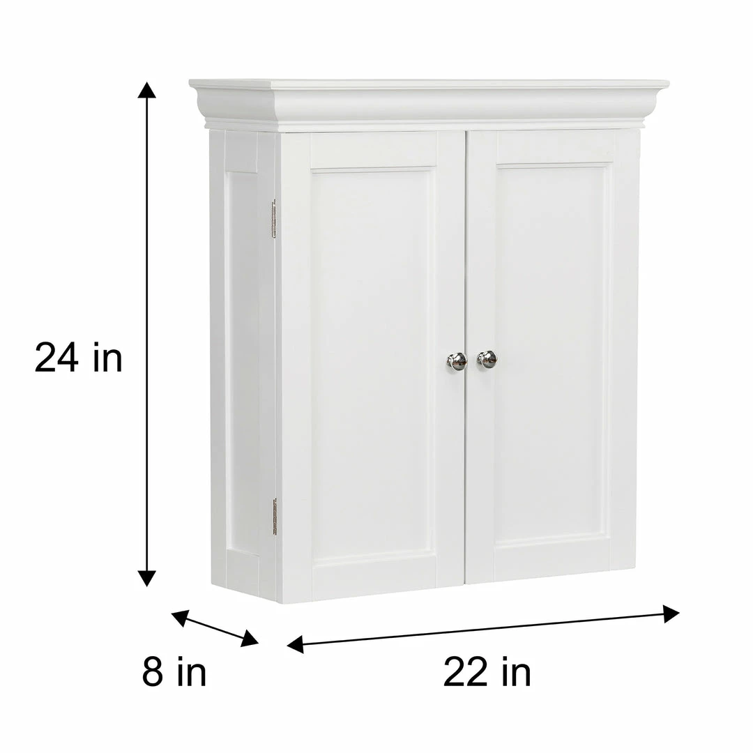 Upgrade your home storage while adding classic style with the Teamson Homes Stratford Wooden 2 Door removable Wall Cabinet. This decorative cabinet features a timeless white look with a contemporary design and chrome-plated door knobs for a beautiful addition to your space. The 2 included adjustable shelves make this cabinet functional and customizable to suit your storage needs. Constructed from durable engineered wood, this storage unit is built to provide you with long-lasting organization. Easy, step-by-step instructions and all of the hardware are included for quick assembly. Purchase this stylish wall cabinet alone or with other items from the Broadway collection for a cohesive, updated look. The Teamson Homes Stratford Wooden 2 Door removable Wall Cabinet measures 22.25″ x 8″ x 24″ to provide removable storage without taking up too much space in your bathroom.