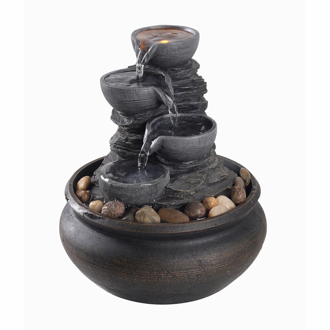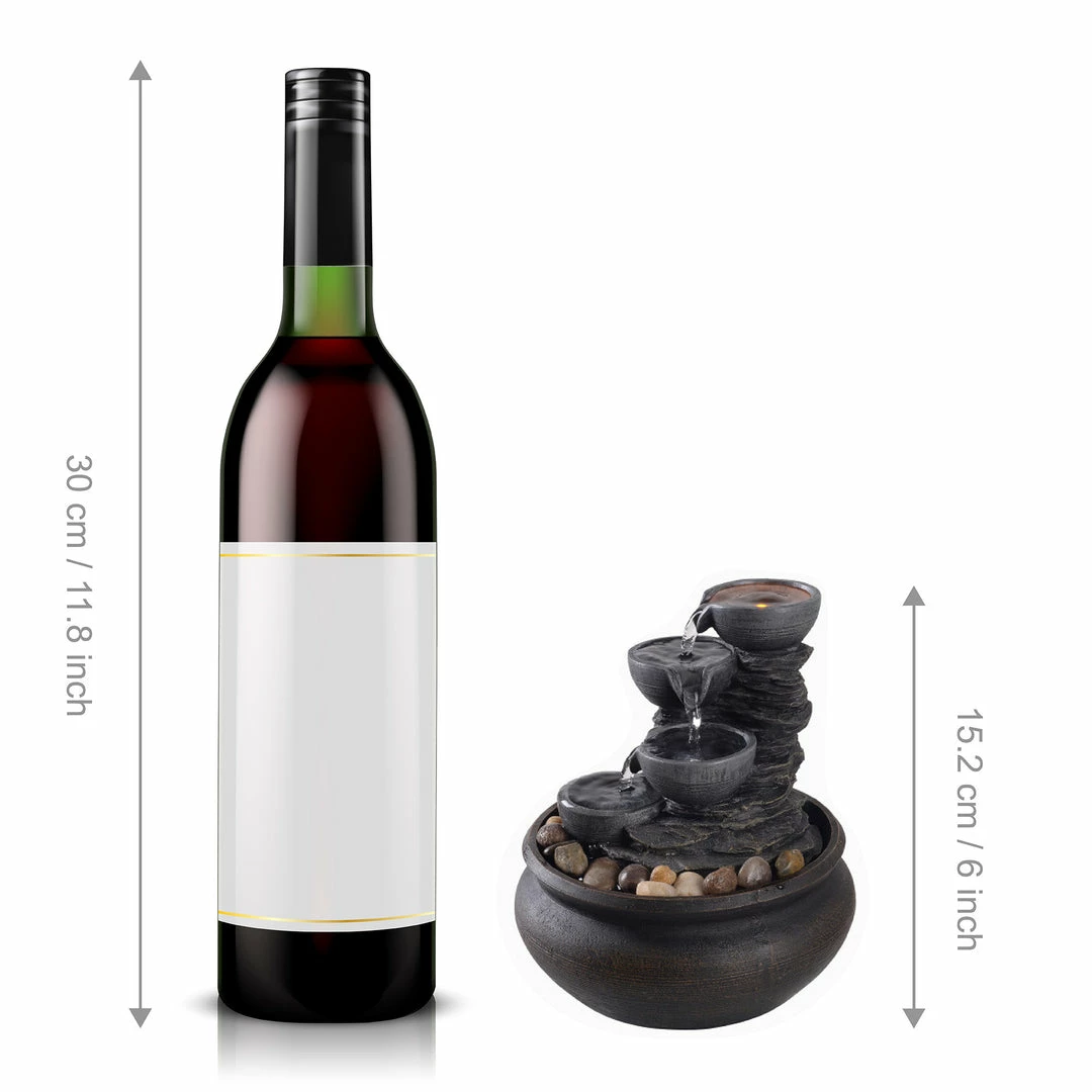 - INCLUDED LED LIGHTS: Built-in LED lights keep the fountain lit to add calming illumination to your space