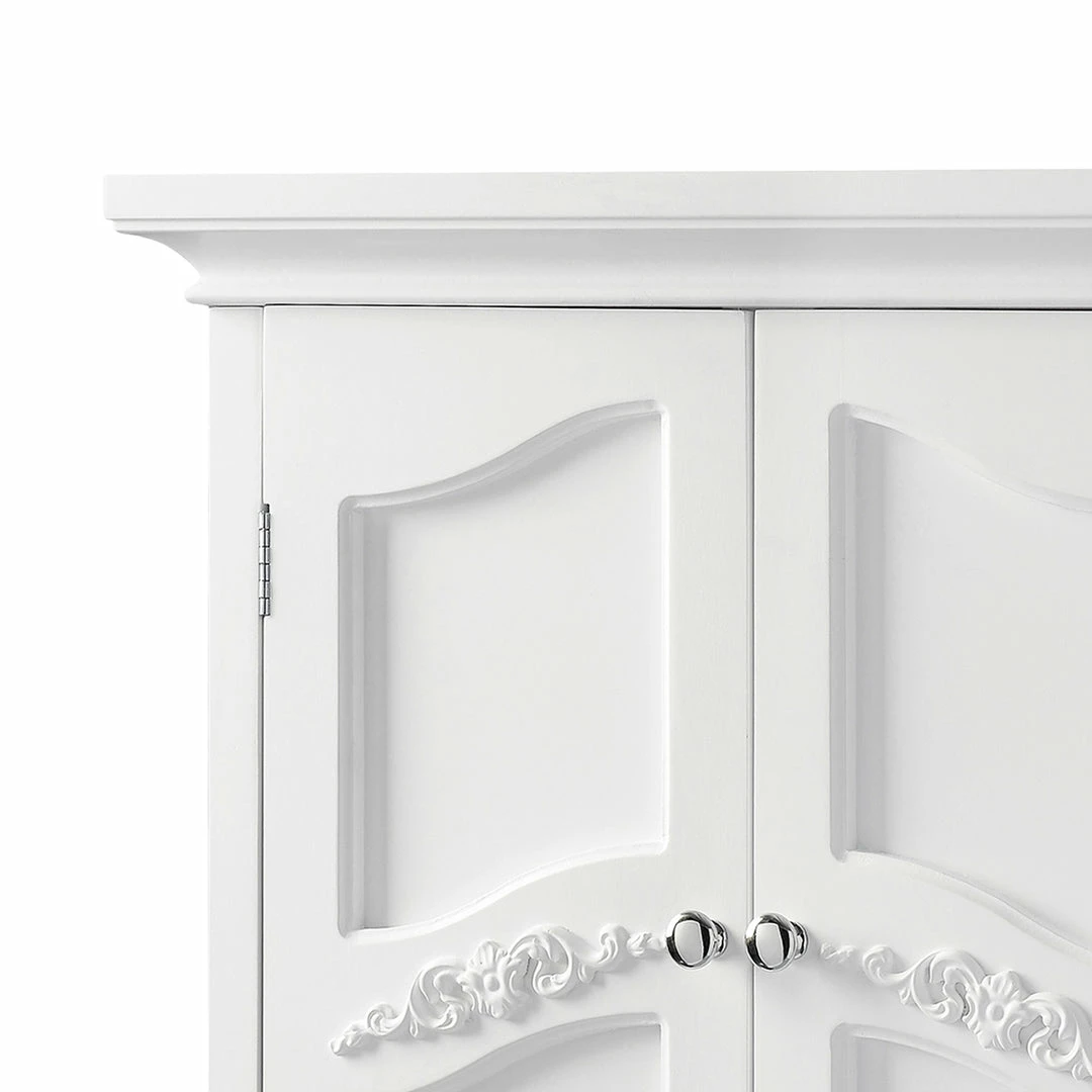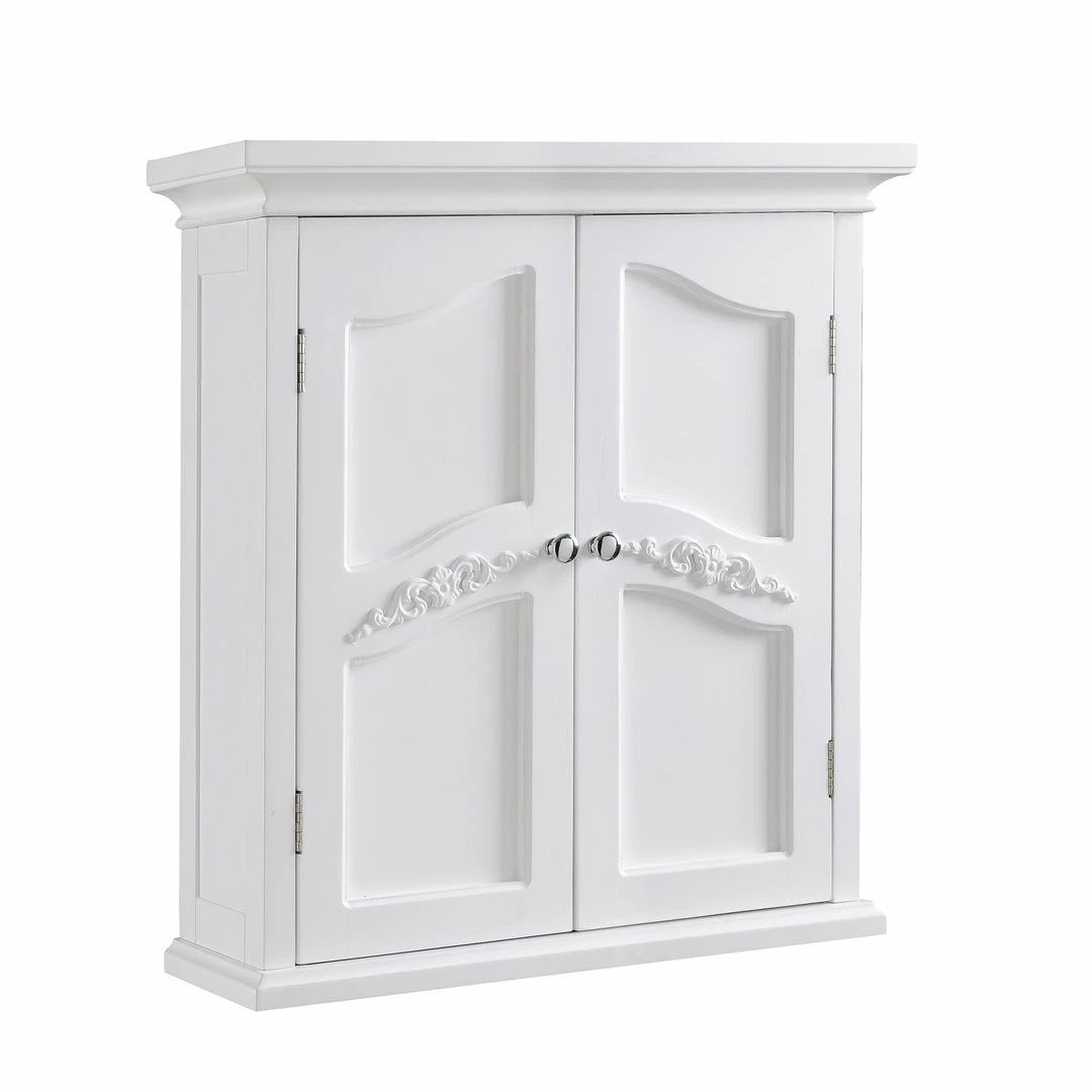 Upgrade your home storage while adding classic style with the Teamson Homes Versailles Wooden Removable Wall Cabinet with 2 Shelves. This decorative cabinet features a white finish with a crown molded top, metal knobs, and engraved doors for a timeless addition to your space. The 2 included adjustable shelves make this cabinet functional and customizable to suit your storage needs. Constructed from durable engineered wood, this storage unit is built to provide you with long-lasting organization. Easy, step-by-step instructions and all of the hardware are included for quick assembly. Purchase this stylish wall cabinet alone or with other items from the Versailles collection for a cohesive, updated look. The Teamson Homes Versailles Wooden Removable Wall Cabinet with 2 Shelves measures 8″ x 22″ x 24″ to provide removable storage without taking up too much space in your living area.
