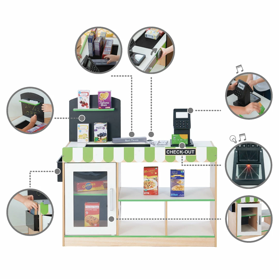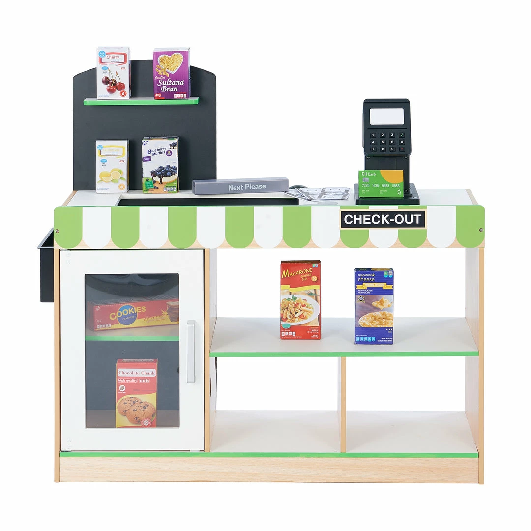 TeamsonUS Teamson Kids Cashier Austin Play Market Checkout Counter With 26 Accessories, Green/Natural