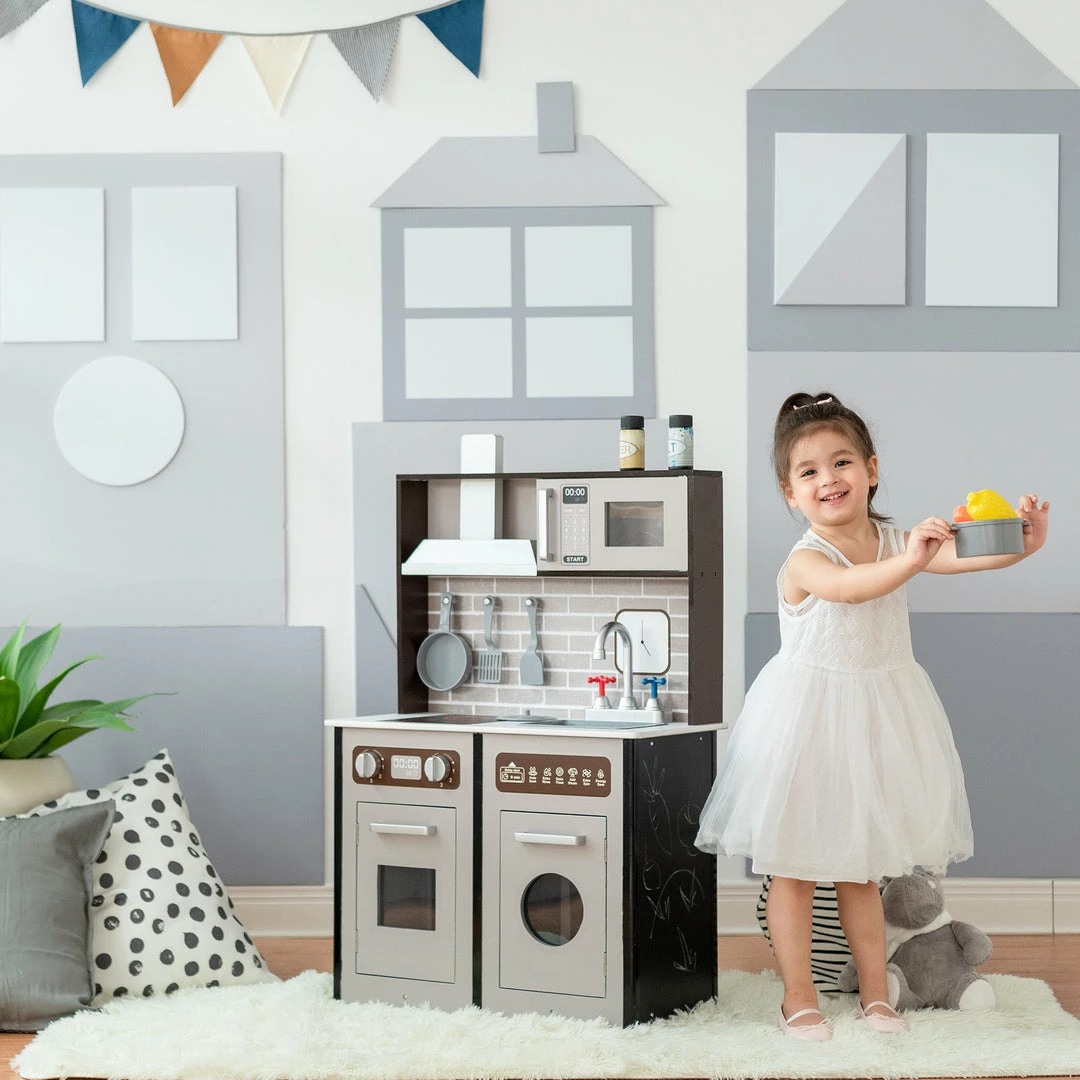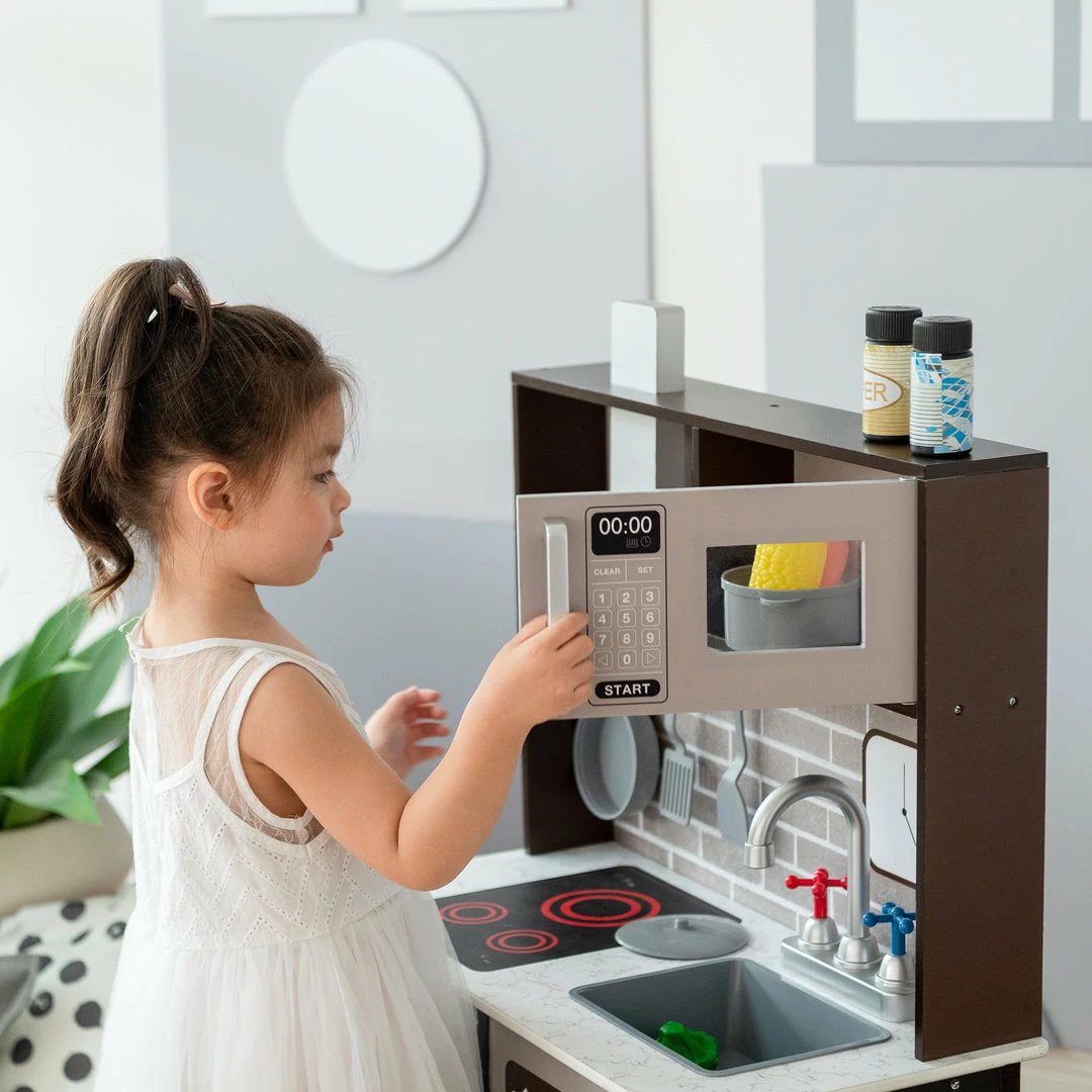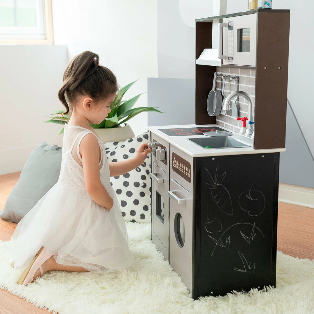 TeamsonUS Teamson Kids Little Chef Burgundy Classic Play Kitchen, Expresso/Black