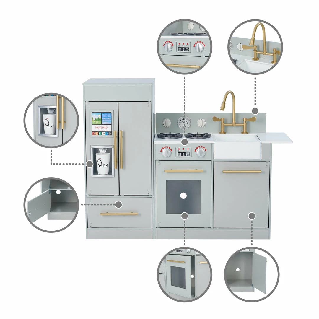 Teamson Kids – Little Chef Chelsea Modern Play Kitchen – Silver Grey / Gold
