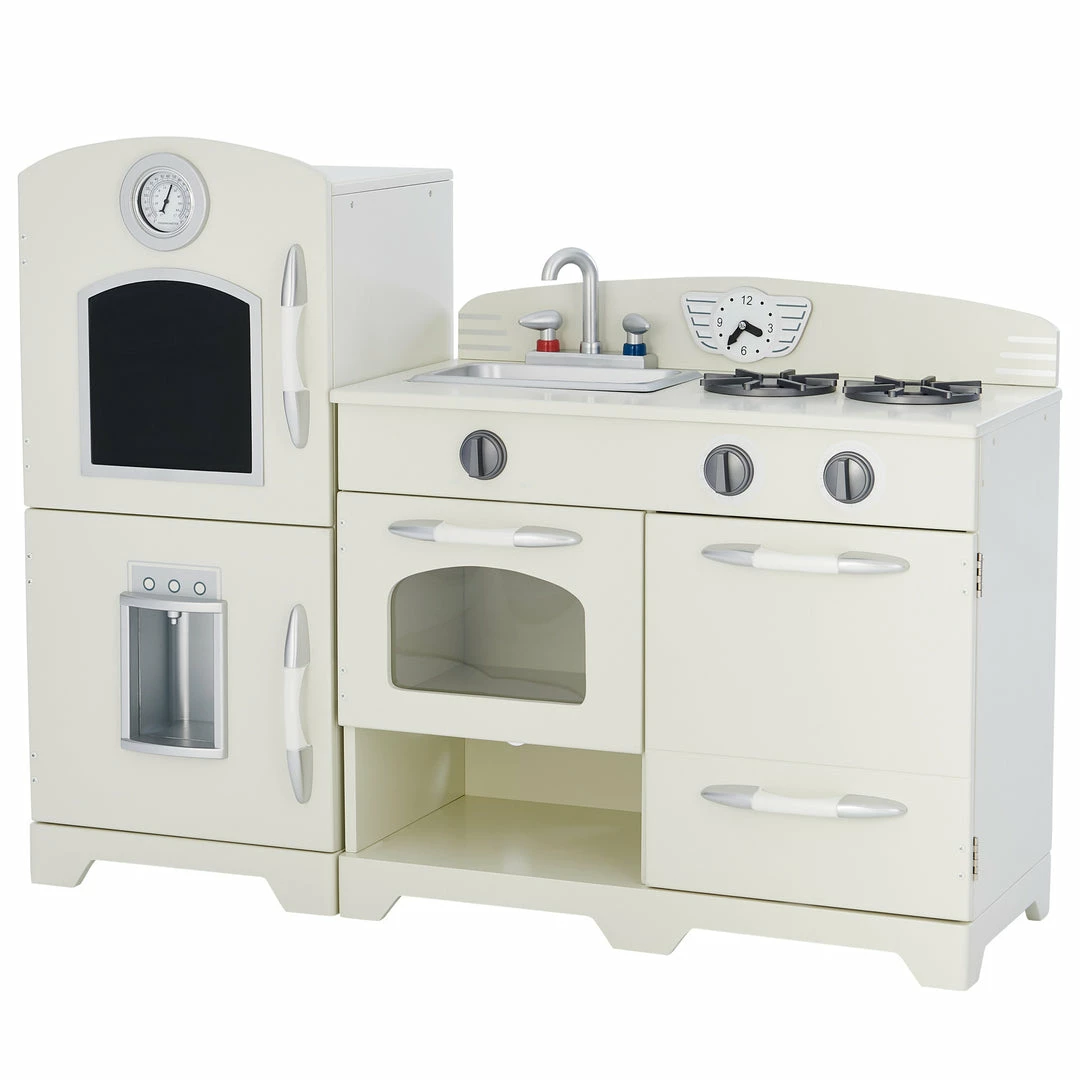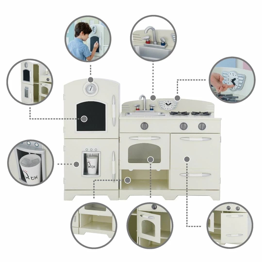 - KIDS PLAY KITCHEN SET: Retro-style kitchen playset with a classic ivory look is great for both boys and girls and completes any home, classroom, preschool, or daycare playroom