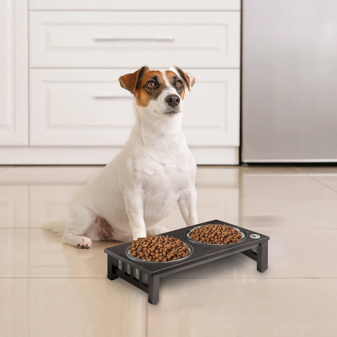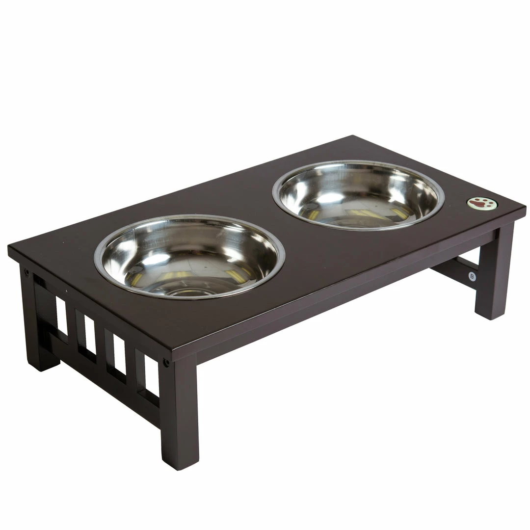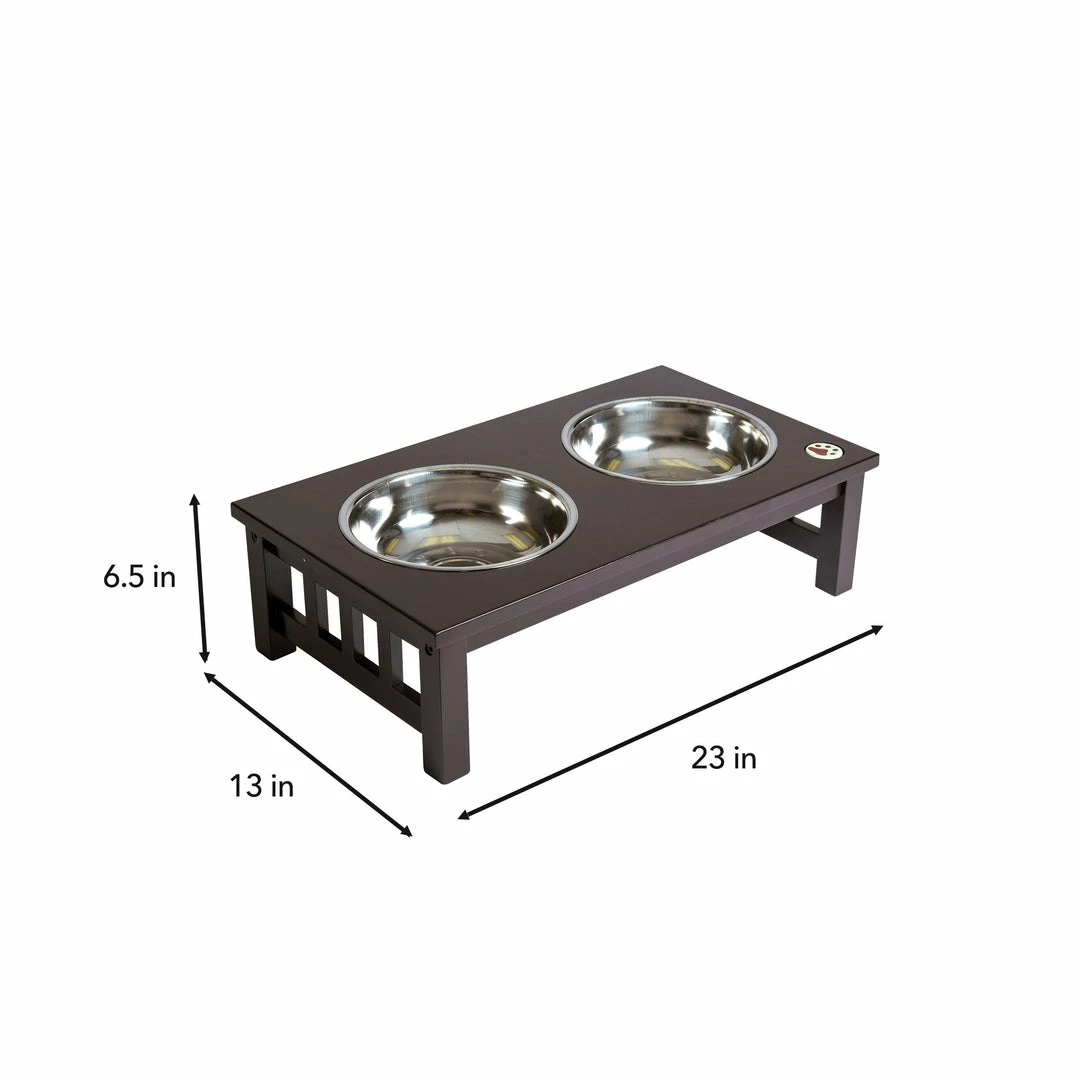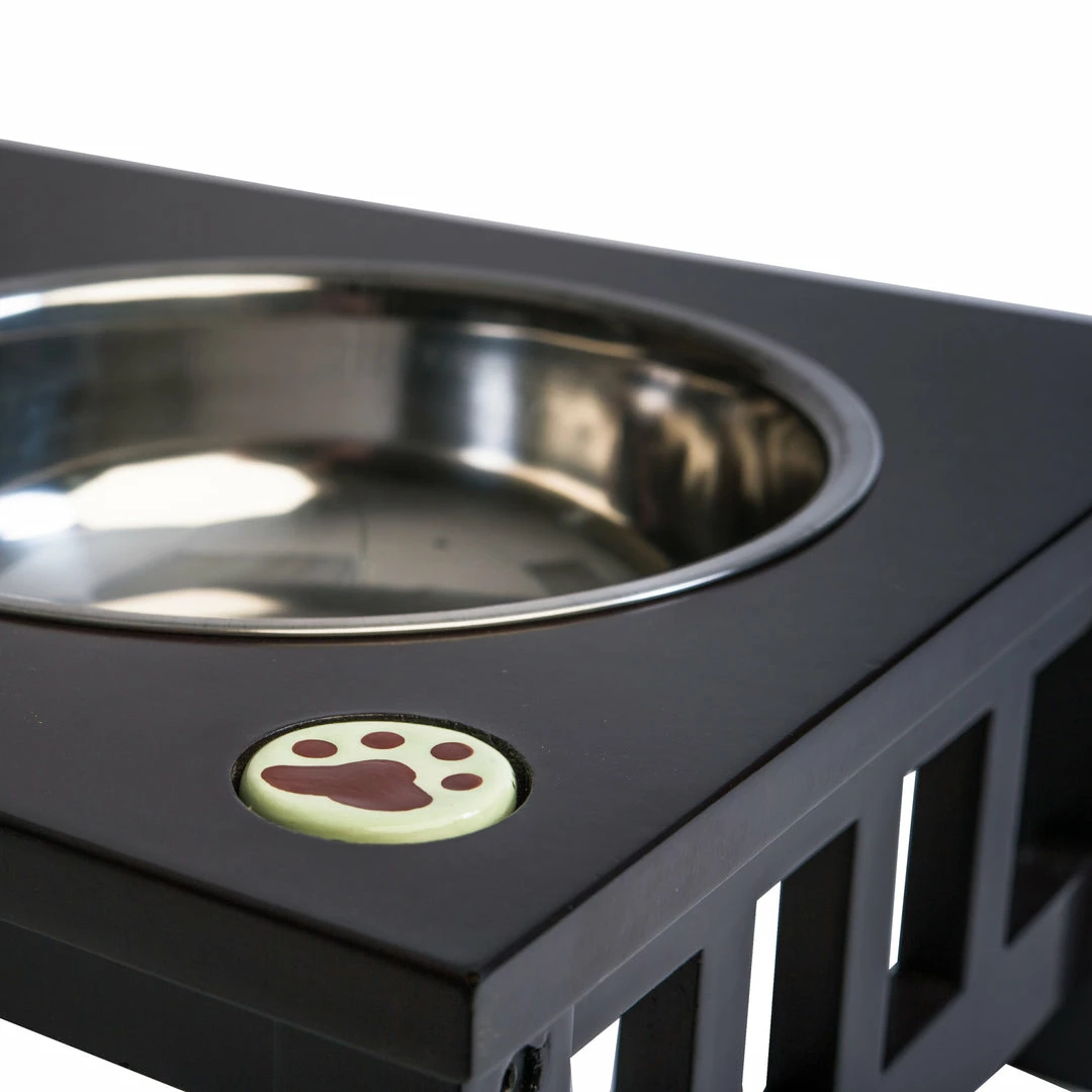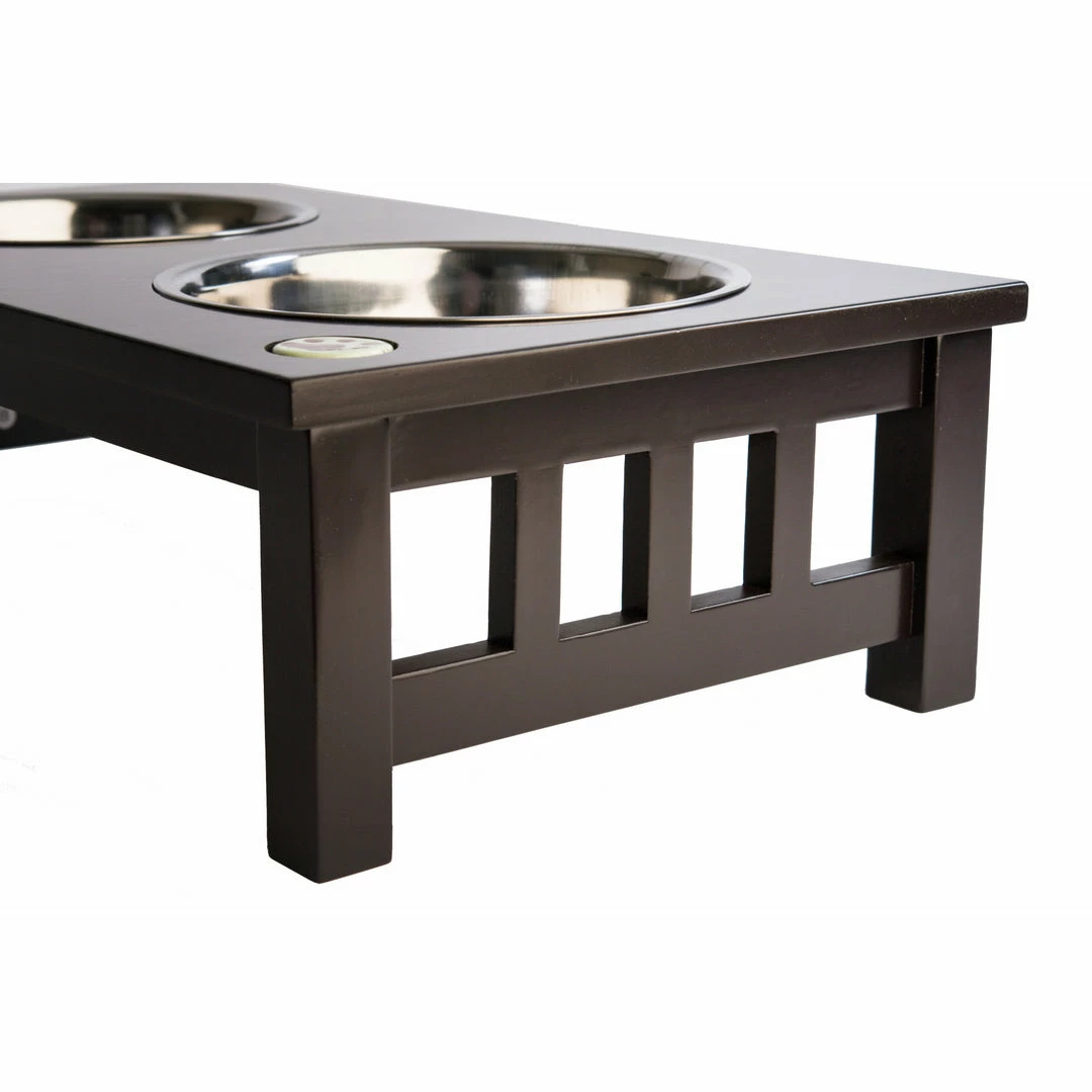 TeamsonUS Teamson Pets 6.5″ Pet Dog Feeder With 2 Stainless Steel Bowls, Espresso