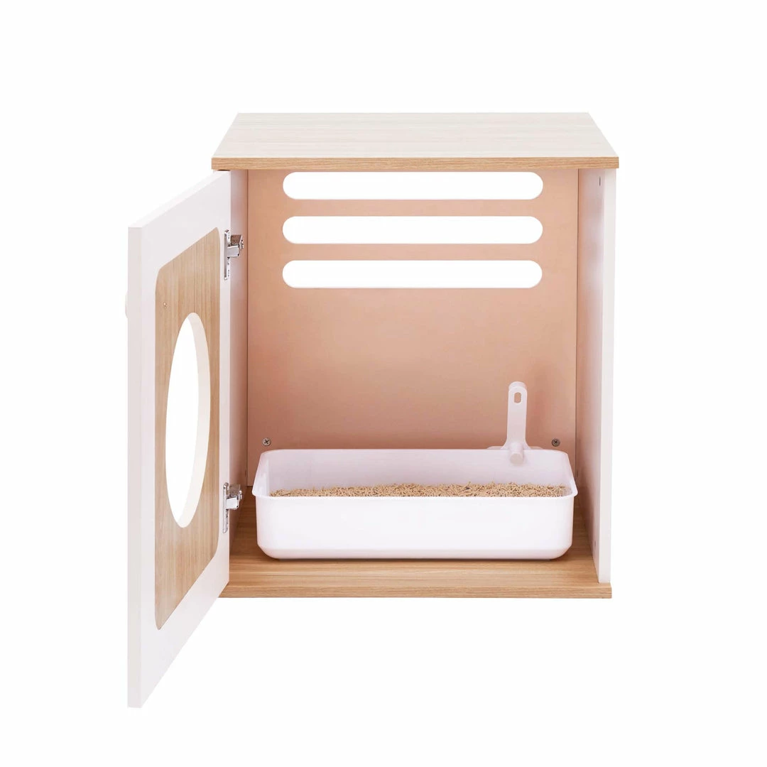 TeamsonUS Teamson Pets Daisy Two Tone Wooden Cat Litter Box Enclosure Side Table, Tan